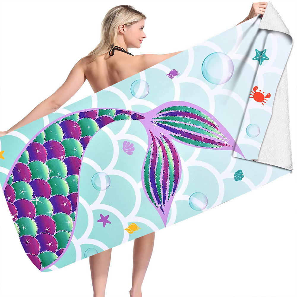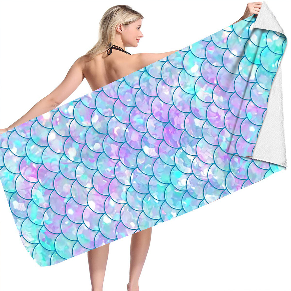 머메이드 펄 시리즈 비치 타올 극세사 양면 양털 비치 타올 수영 목욕 타올 스퀘어 타올 비치 타올