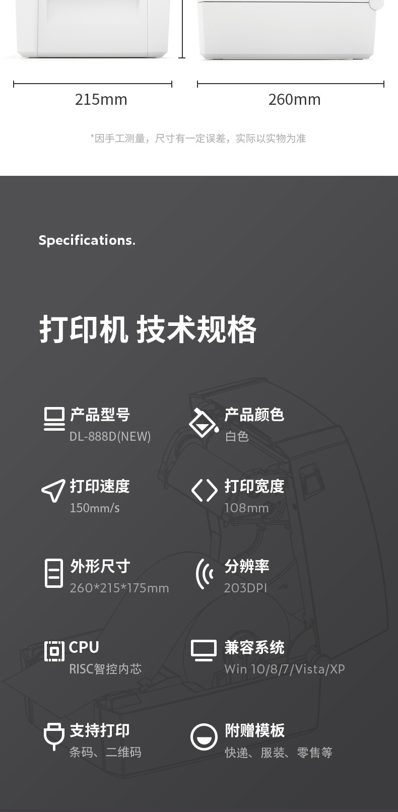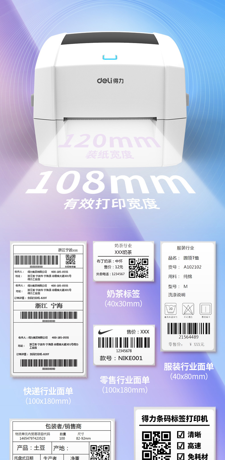델리 DL-888D(NEW) 라벨 기계 열 접착제 익스프레스 표면 단일 2 차원 코드 노트 바코드 프린터