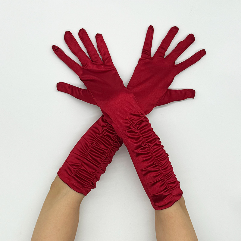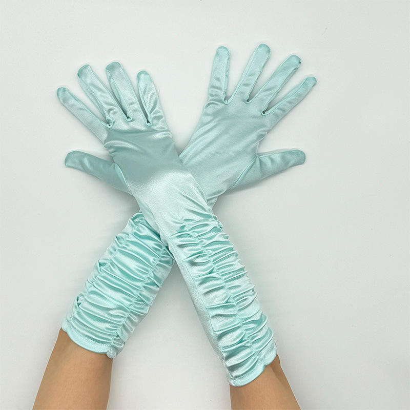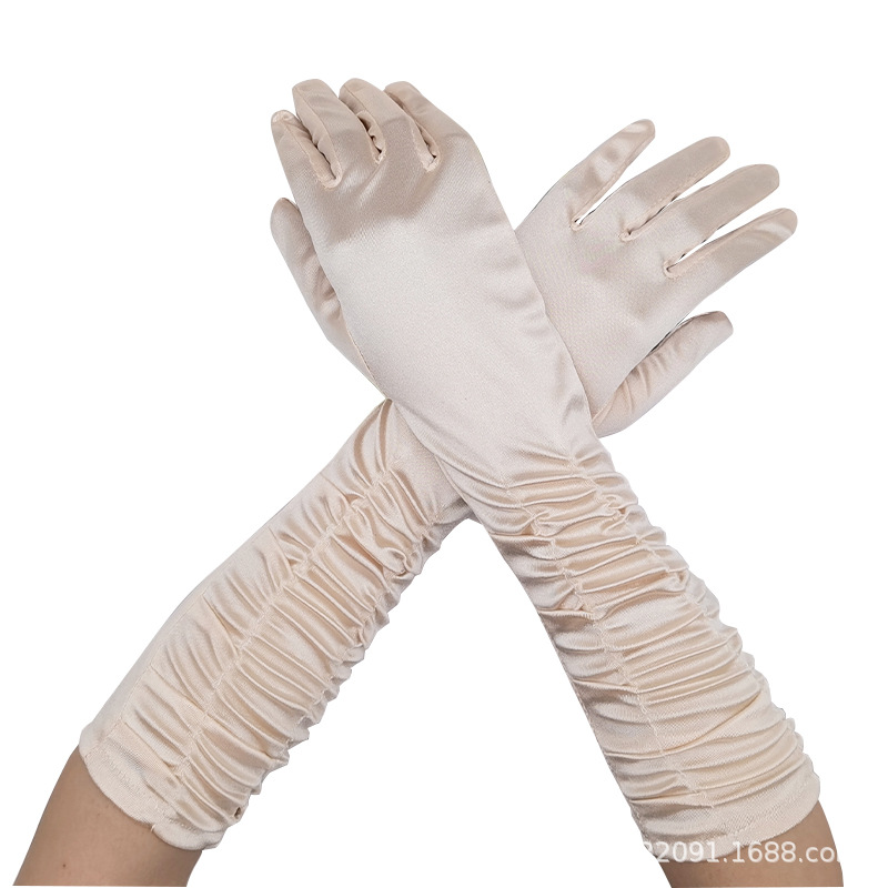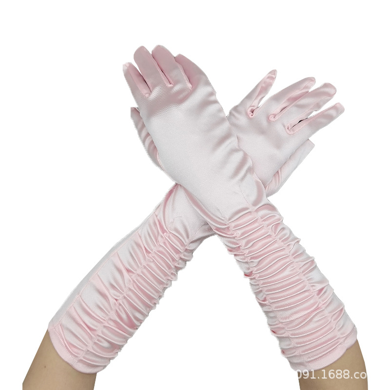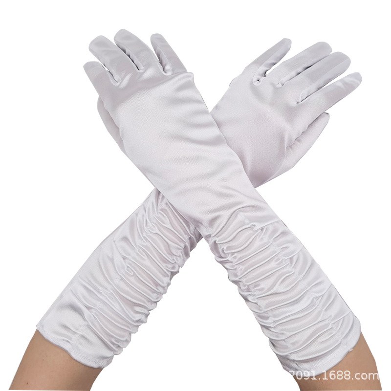 신부 웨딩 장갑 여성의 주름 무대 공연 원피스 웨딩 장갑 새틴 새틴 장갑
