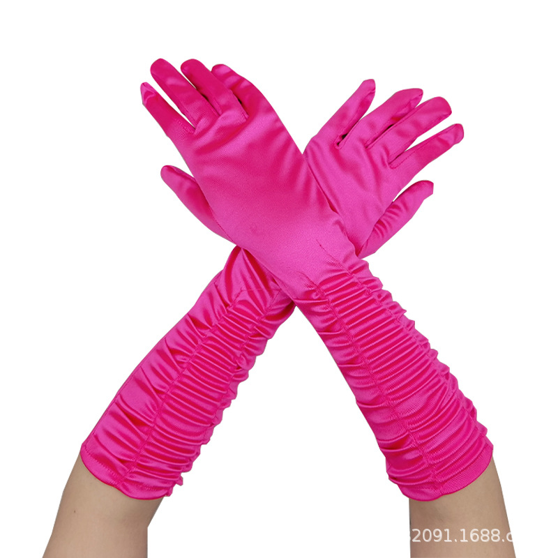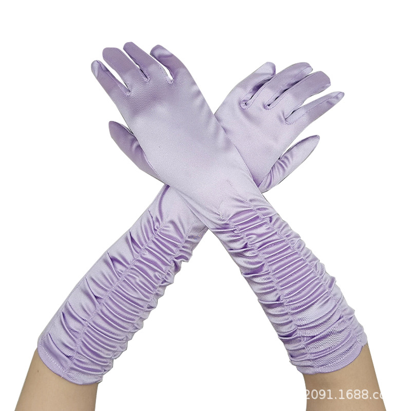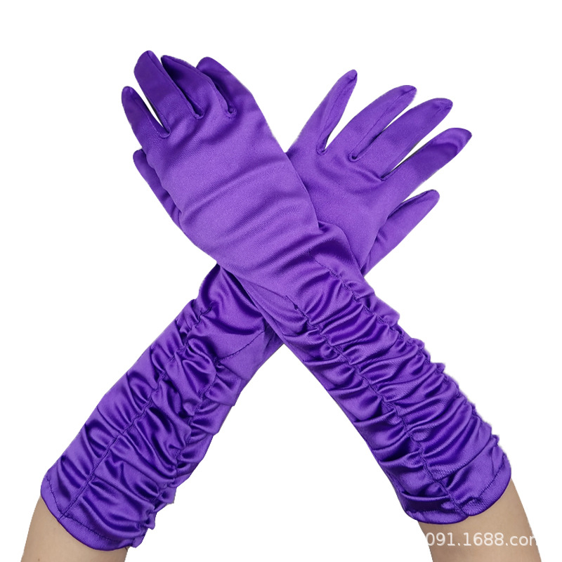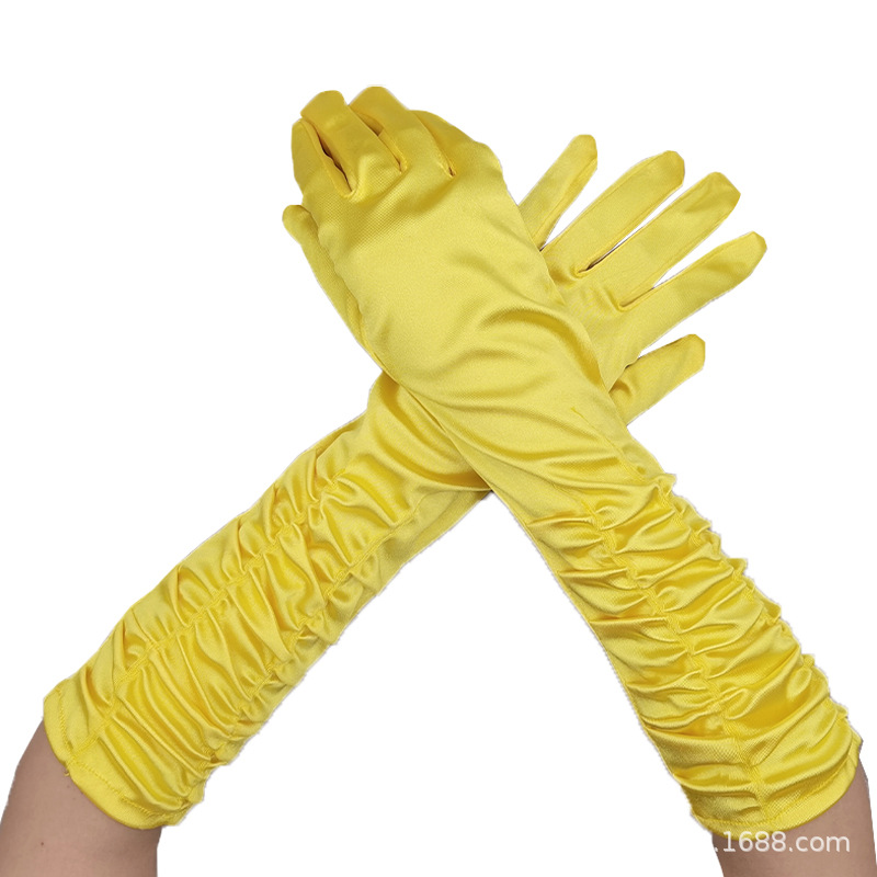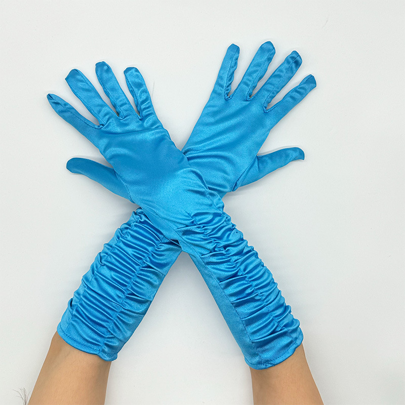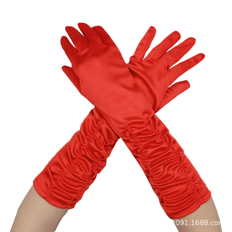 신부 웨딩 장갑 여성의 주름 무대 공연 원피스 웨딩 장갑 새틴 새틴 장갑