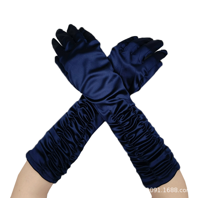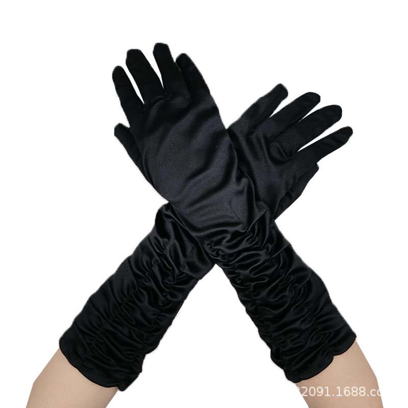 신부 웨딩 장갑 여성의 주름 무대 공연 원피스 웨딩 장갑 새틴 새틴 장갑스토어 가기