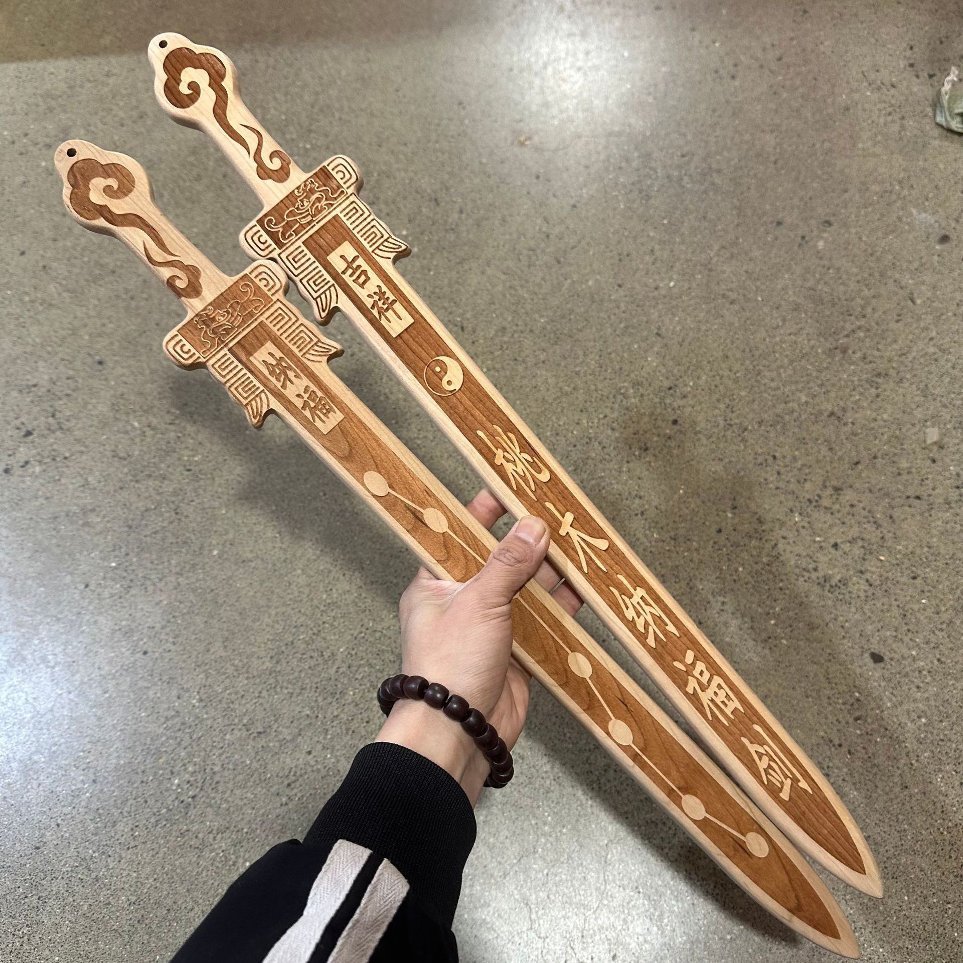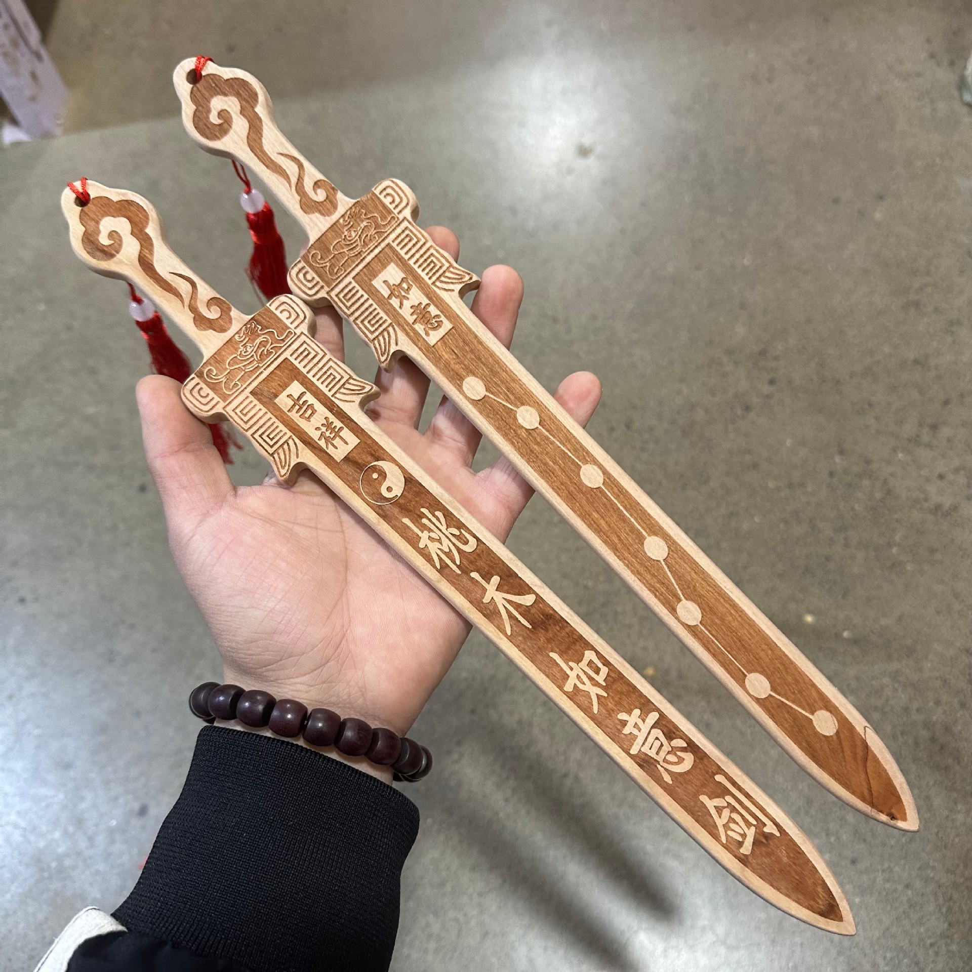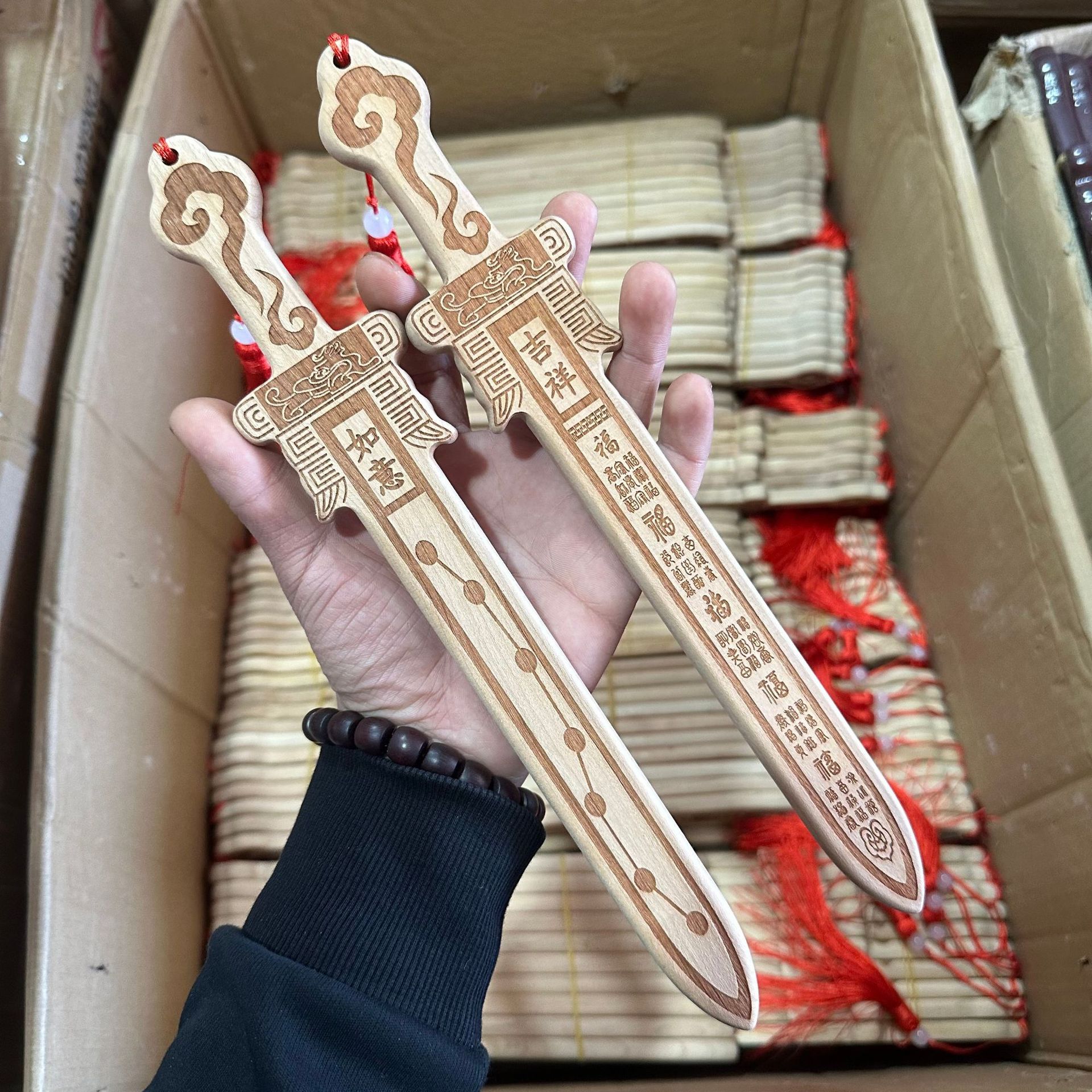 Feicheng Peach Mujian Peach Mufu Axe 기본 색상 도색되지 않은 복숭아 Mujian 교수형 장식 경치 명소 박람회 공예 나무 검 도매