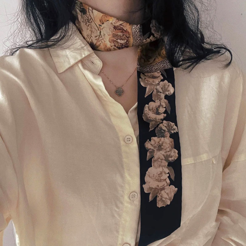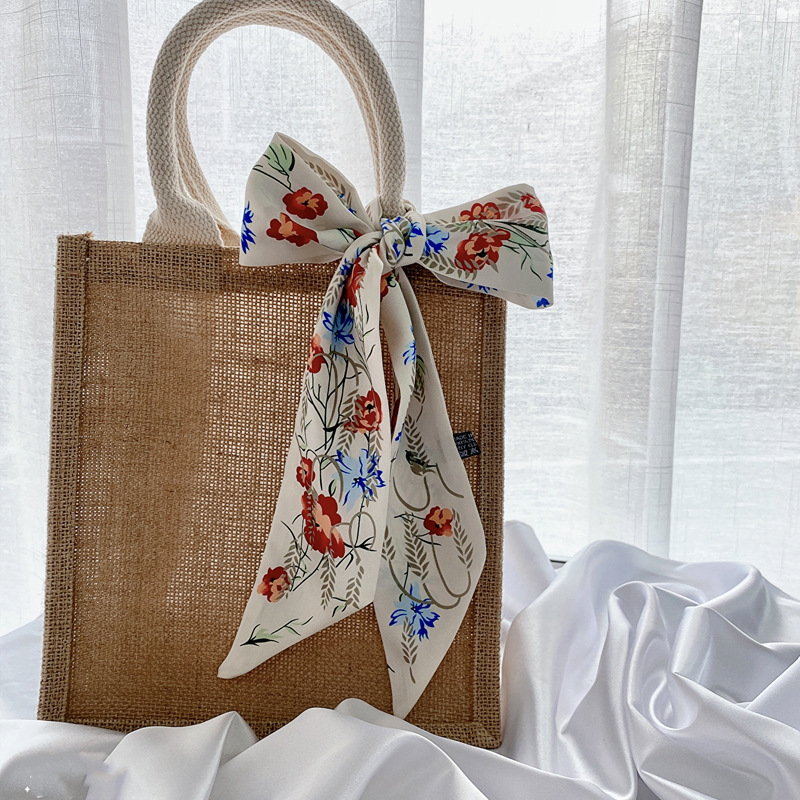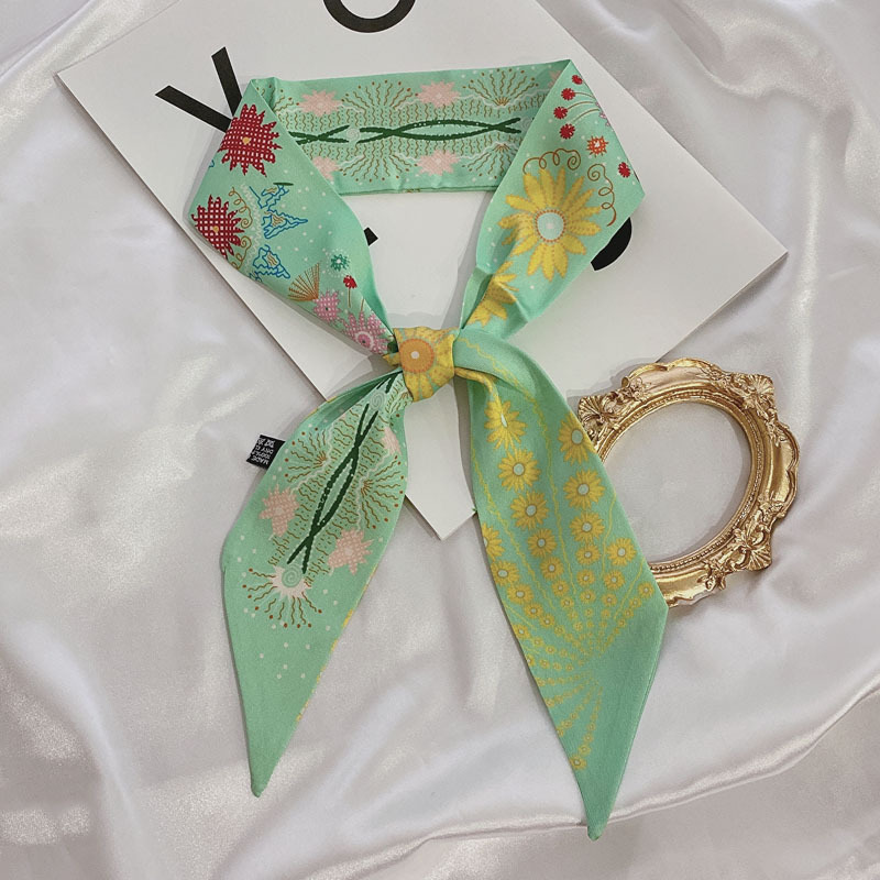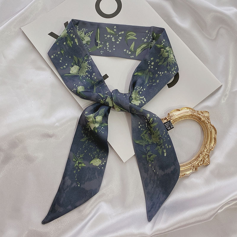 꽃 시리즈 실크 스카프 얇은 좁은 긴 머리 밴드 리본 넥타이 가방 핸들 리본 장식 예술 스카프 머리
