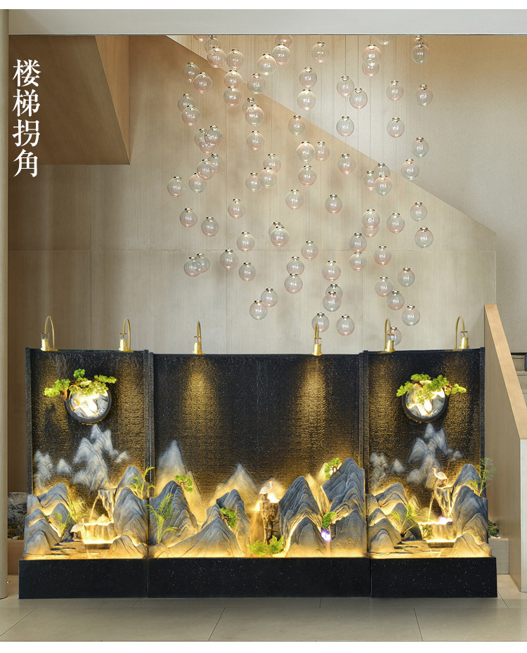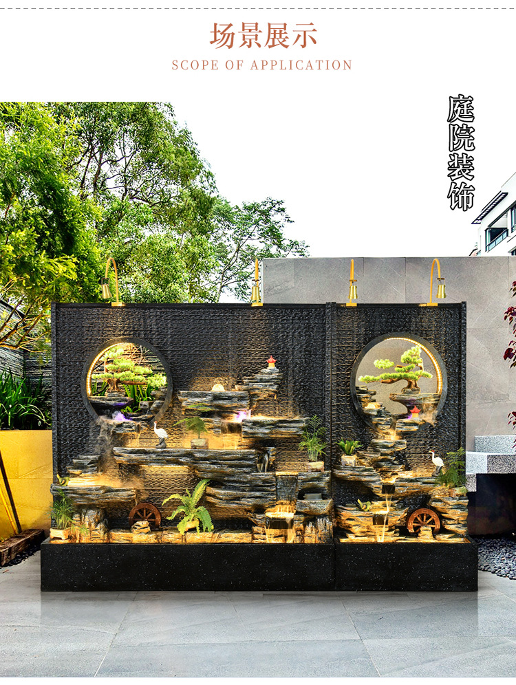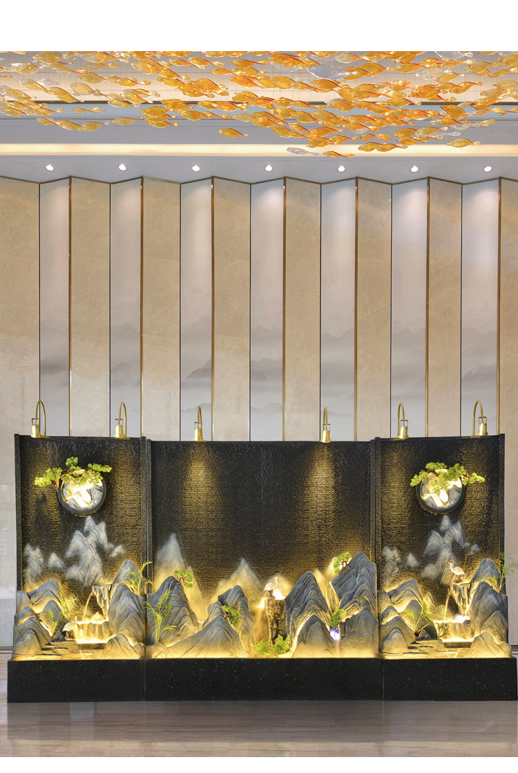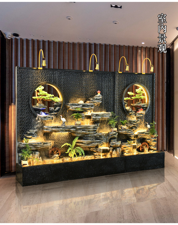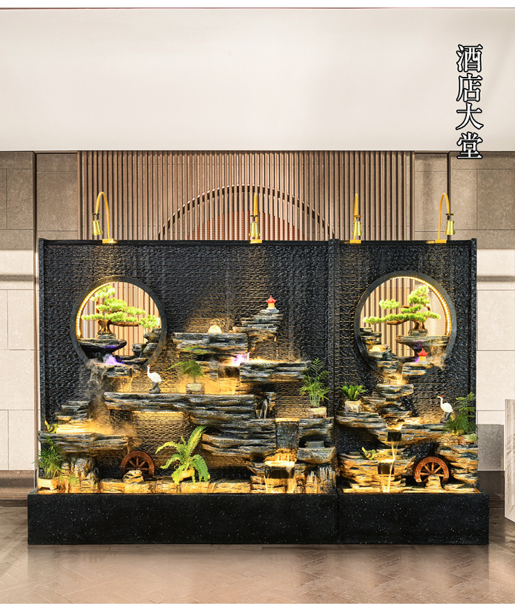 대형 바위 물 분수 물 커튼 월 스크린 빌라 호텔 회사 홀 풍수 바퀴 복 장식품