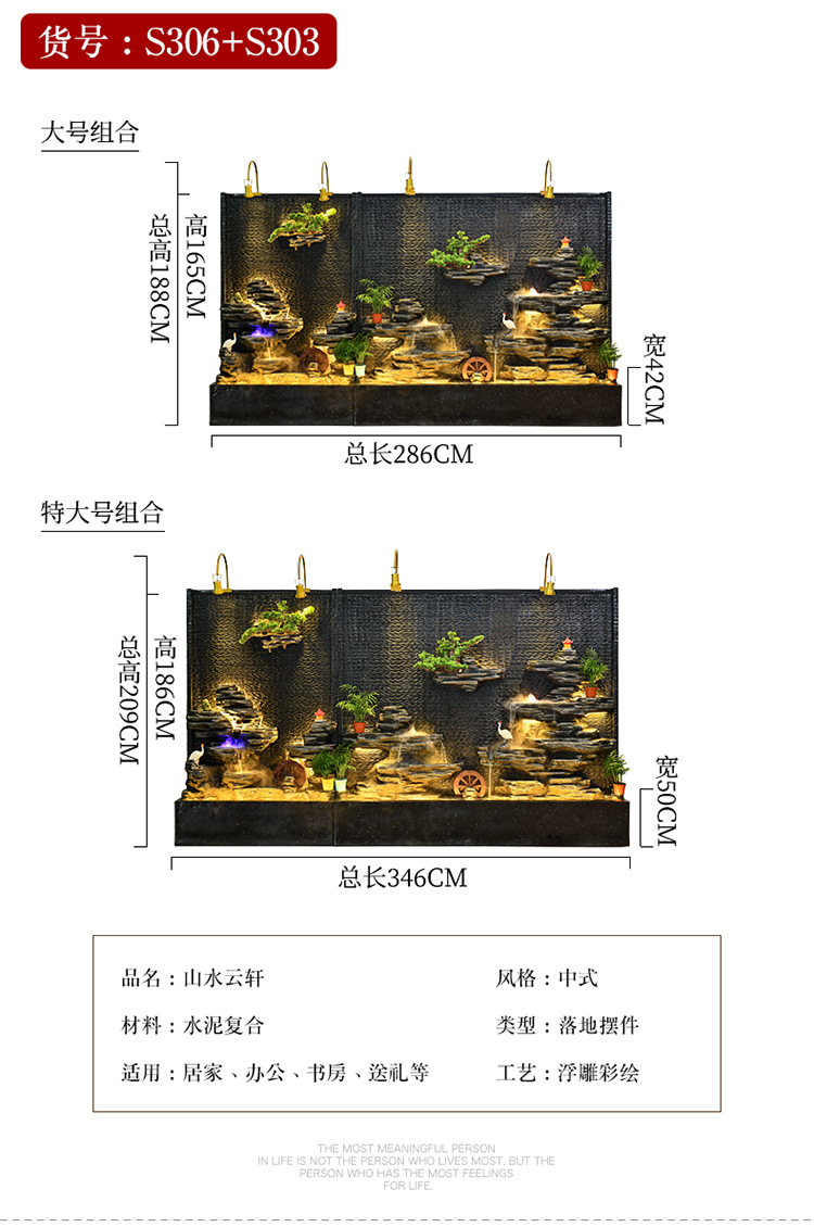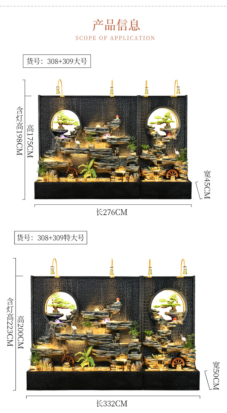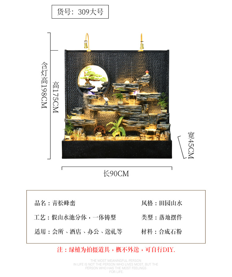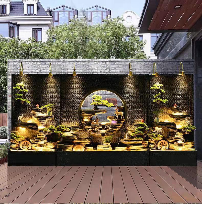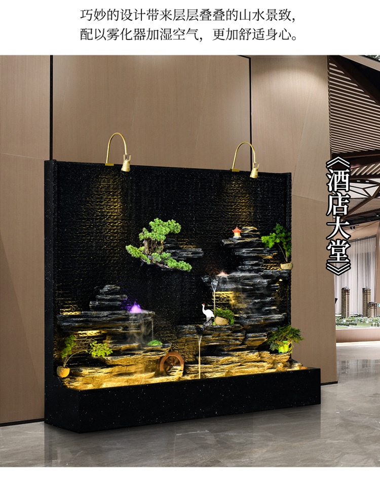 대형 바위 물 분수 물 커튼 월 스크린 빌라 호텔 회사 홀 풍수 바퀴 복 장식품