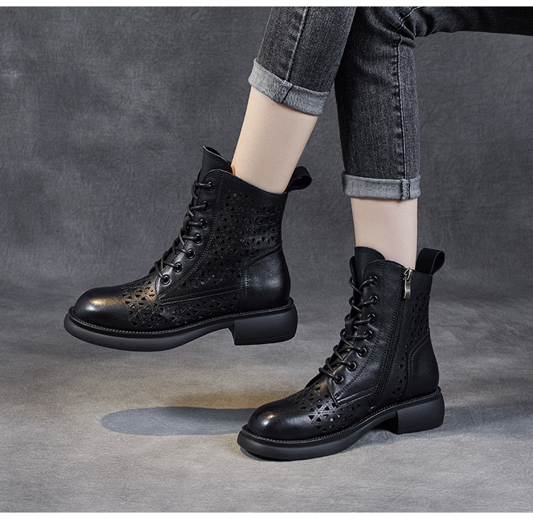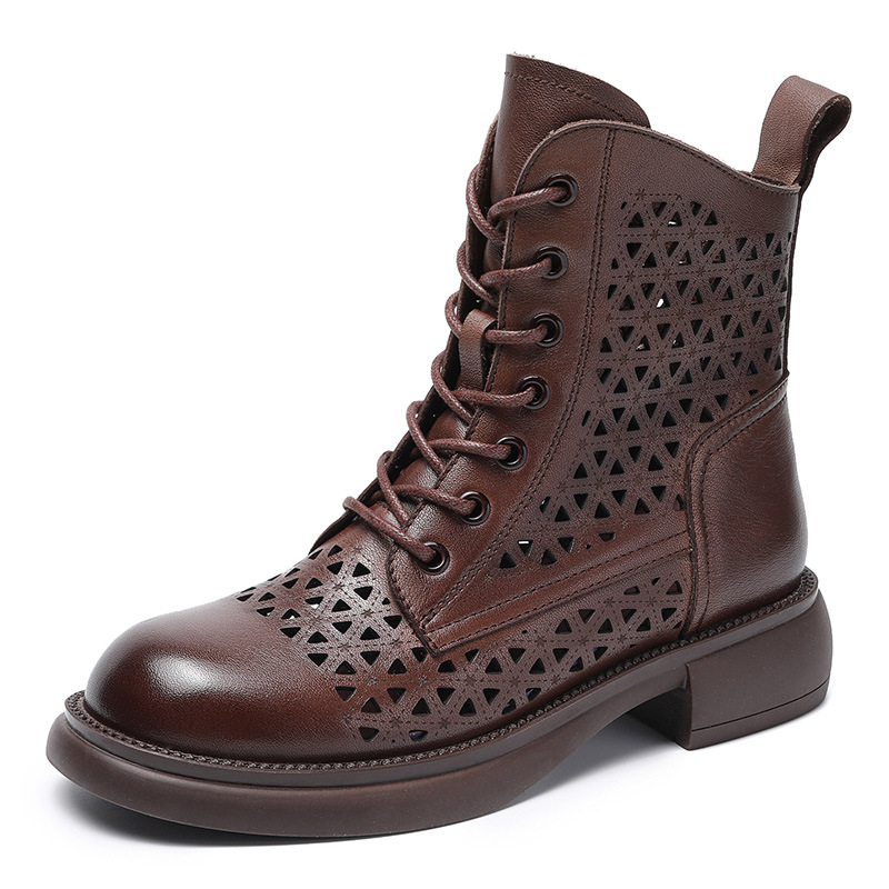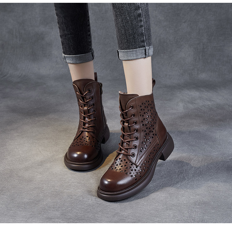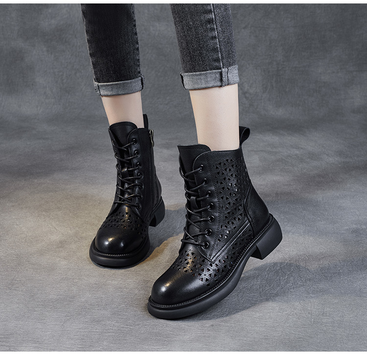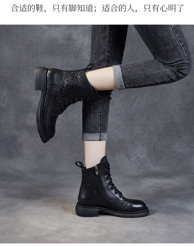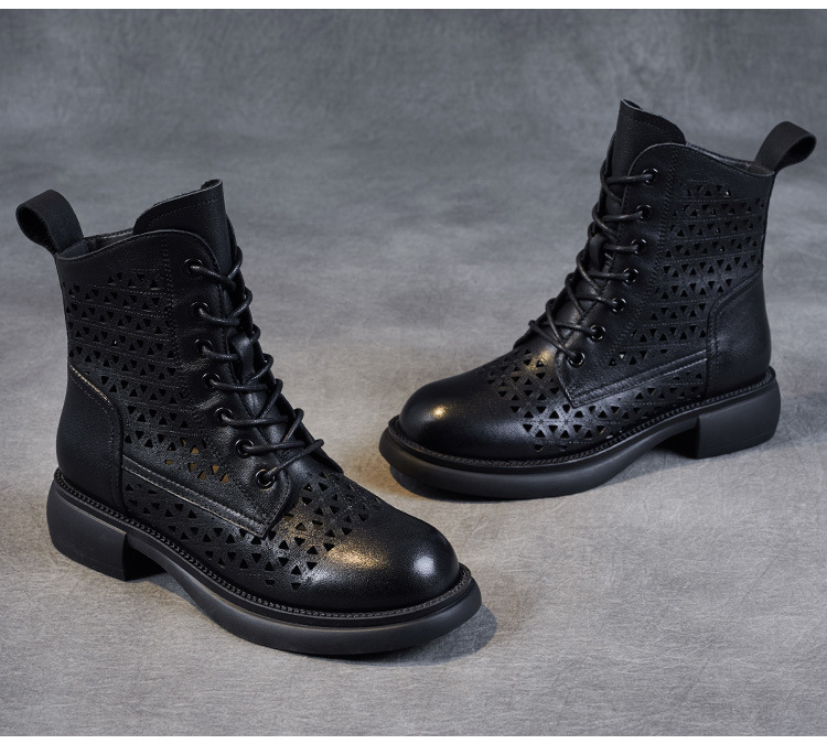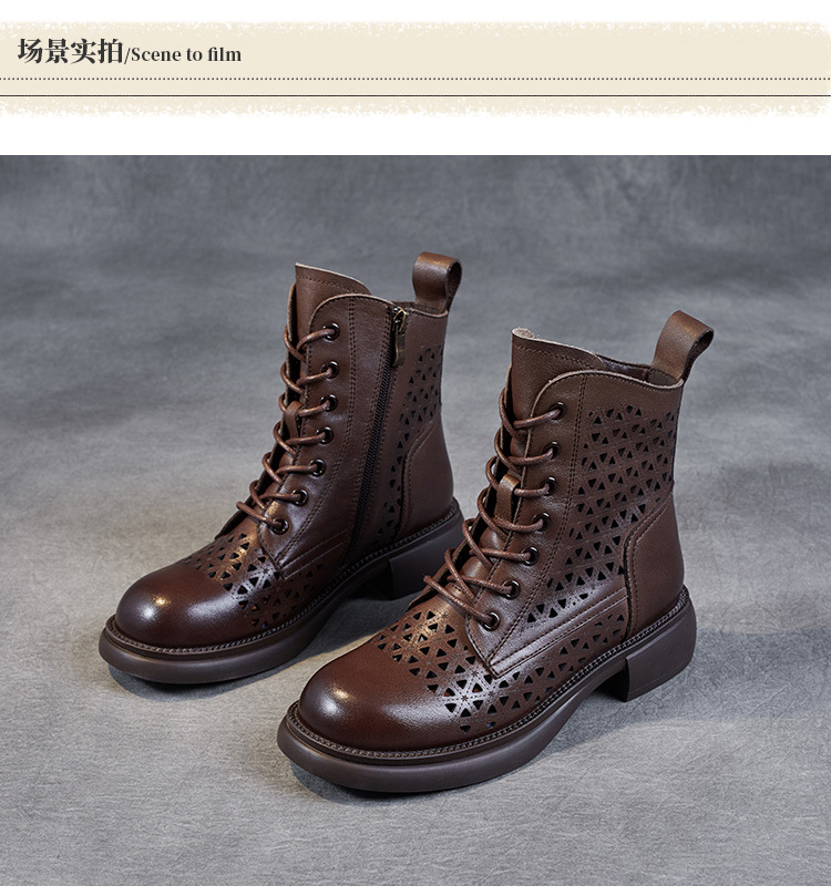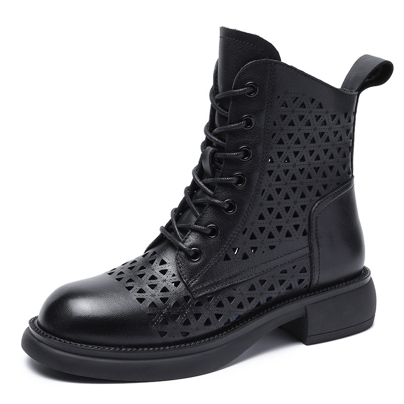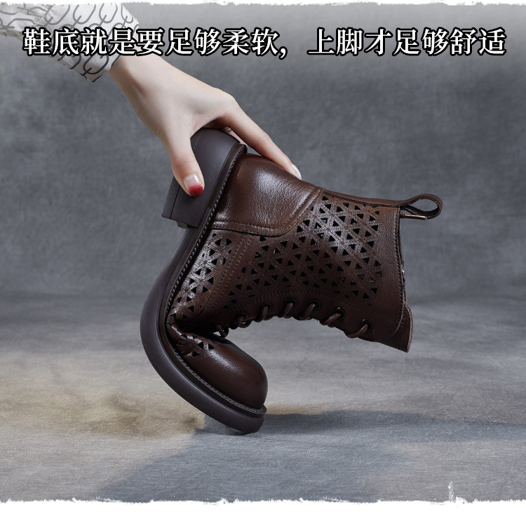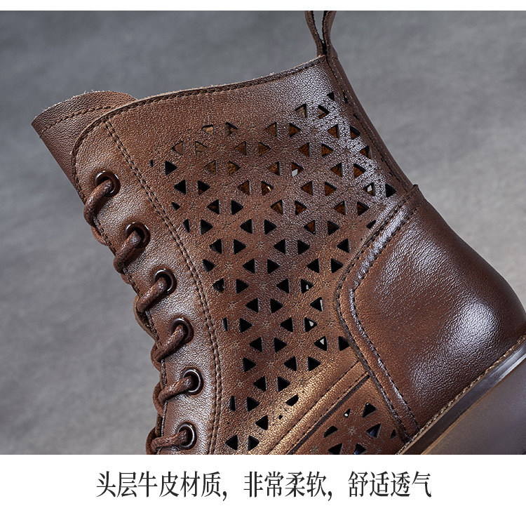 탑 레이어 소가죽 샌들 여성용 중공 마틴 부츠 여름 통기성 미드 실린더 정품 가죽 플랫 로우 힐 모든 매치 홀 부츠