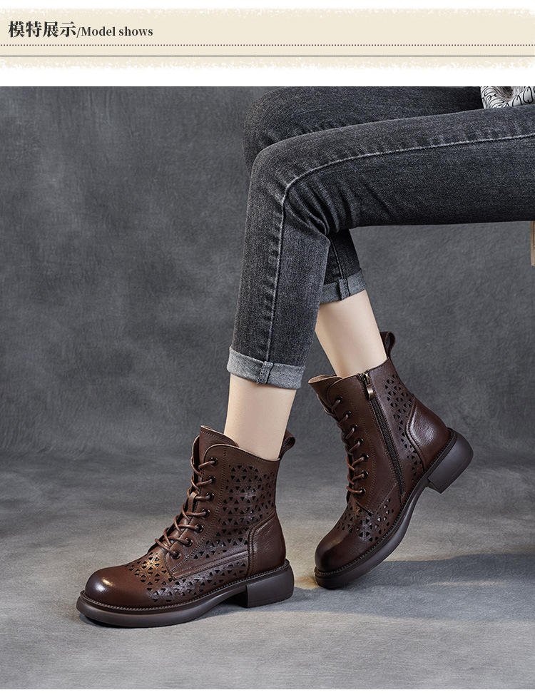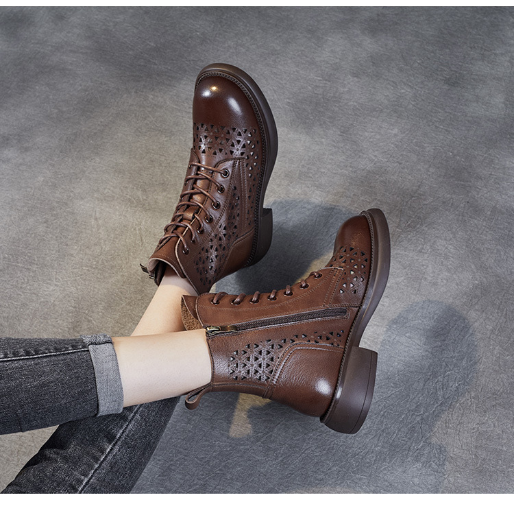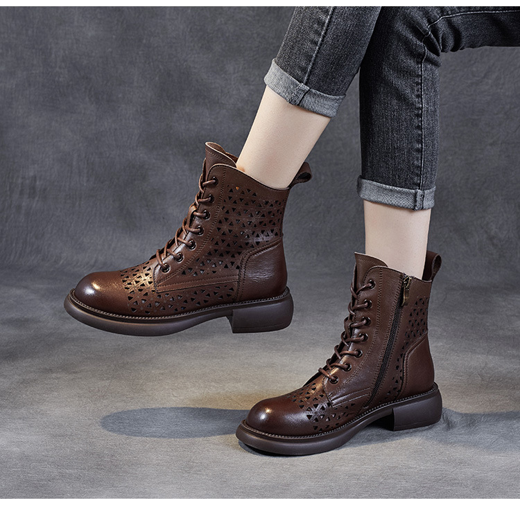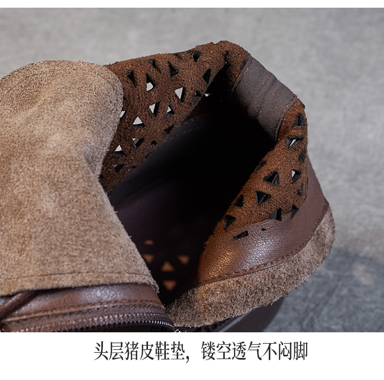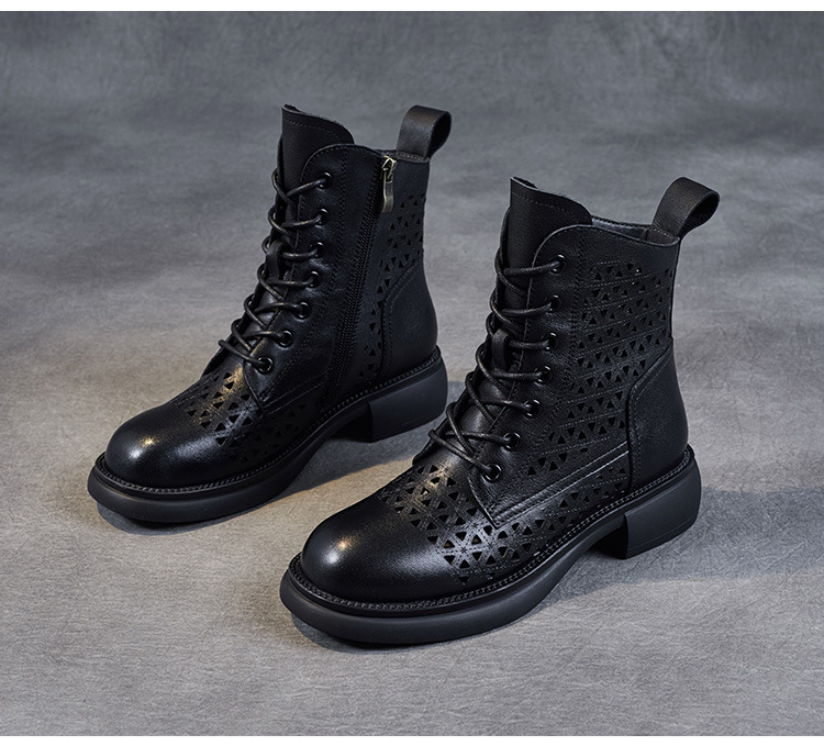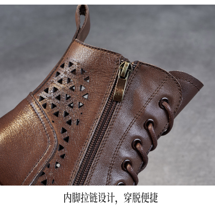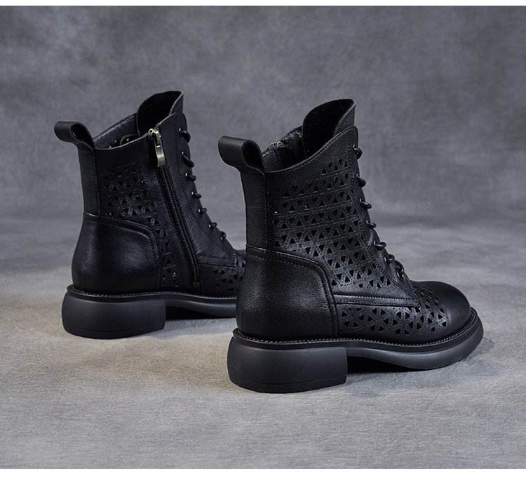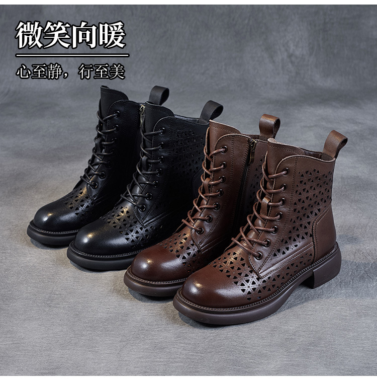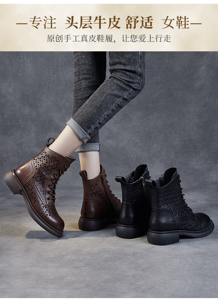 탑 레이어 소가죽 샌들 여성용 중공 마틴 부츠 여름 통기성 미드 실린더 정품 가죽 플랫 로우 힐 모든 매치 홀 부츠