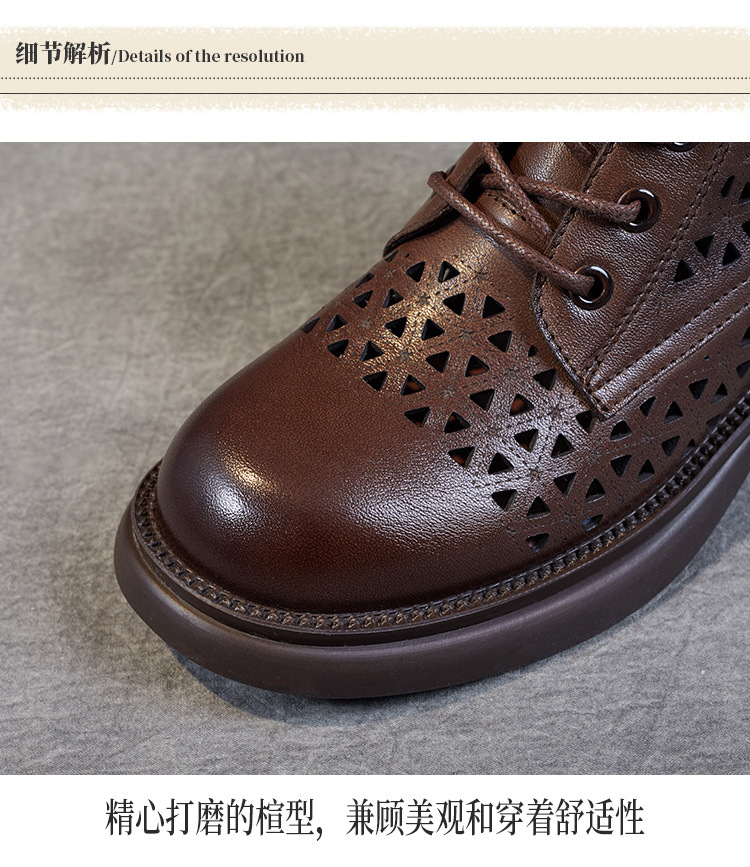 탑 레이어 소가죽 샌들 여성용 중공 마틴 부츠 여름 통기성 미드 실린더 정품 가죽 플랫 로우 힐 모든 매치 홀 부츠스토어 가기