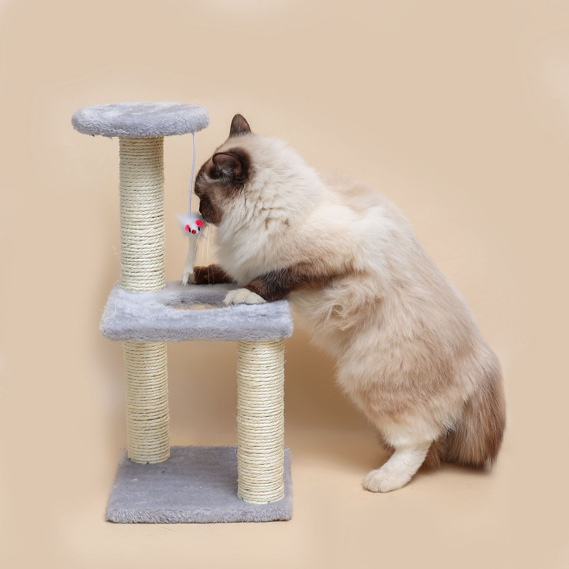 사이잘삼 고양이 클라이밍 프레임 3 단 고양이 점핑 플랫폼 일체형 고양이 장난감 마우스 펜던트 애완용품 공장 직공급스토어 가기