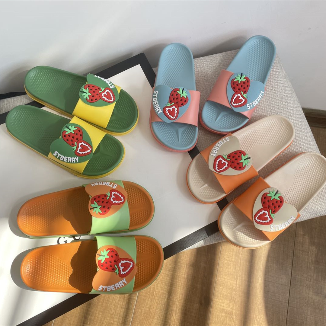 인터넷 유명 딸기 과일 슬리퍼 새로운 캐주얼 한 단어 편안한 해변 슬리퍼 실내 및 실외 패션 여성 슬리퍼 도매