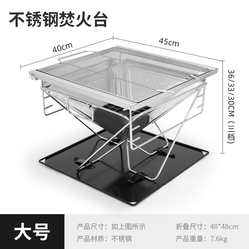 야외 두꺼운 스테인레스 스틸 접이식 바베큐 오븐 캠핑 피크닉 숯 나무 난로 모닥불 스토브 불타는 테이블 대형 사이즈