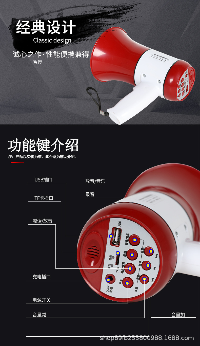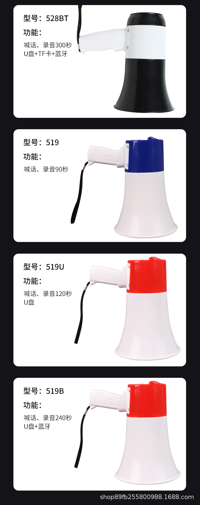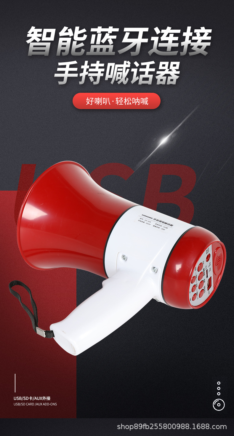 도매 야외 호킹 스톨 스피커 확성기 휴대용 녹음 카드 블루투스 핸드 헬드 메가폰
