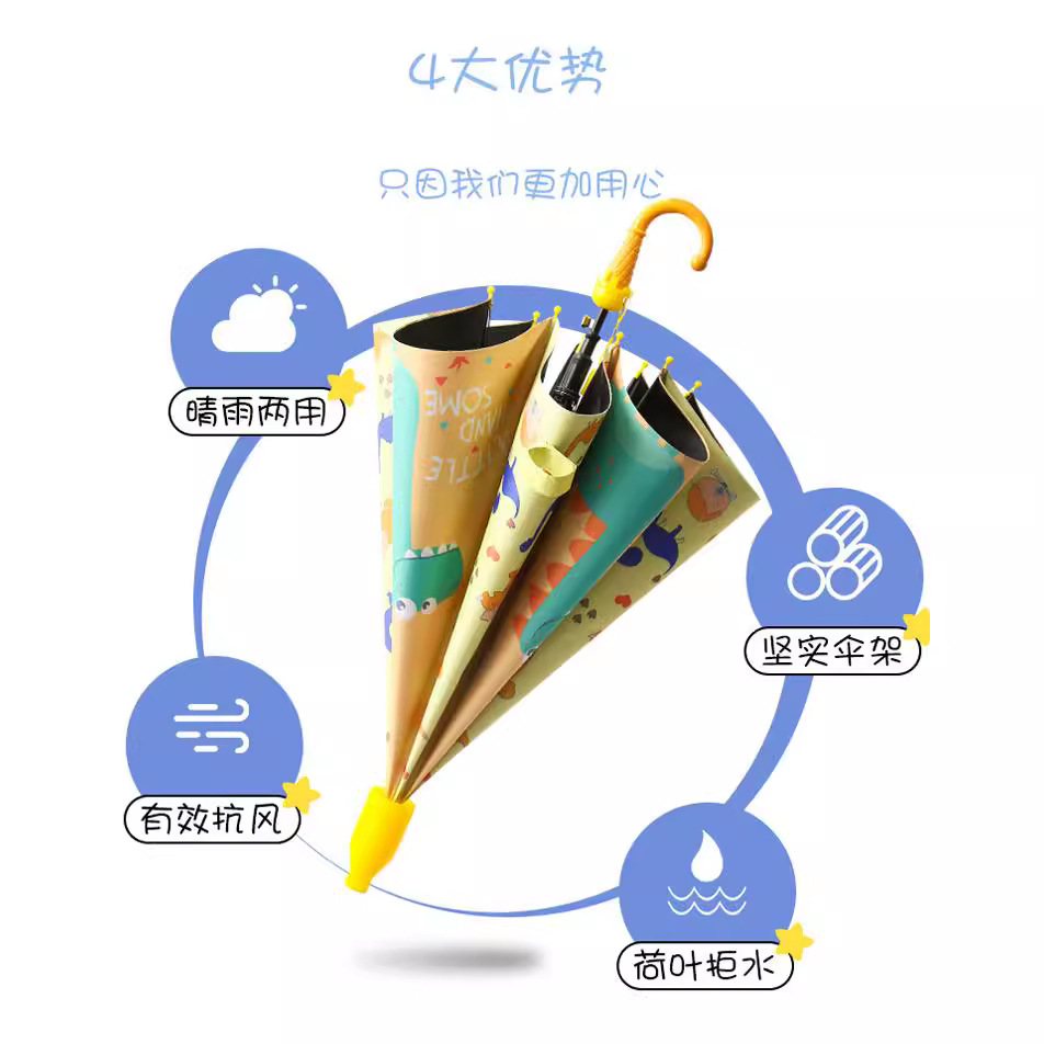 방수 아이스크림 손잡이 만화 어린이 우산 완전 자동 검은 고무 자외선 차단제 인쇄 로고 양산 긴 손잡이 우산