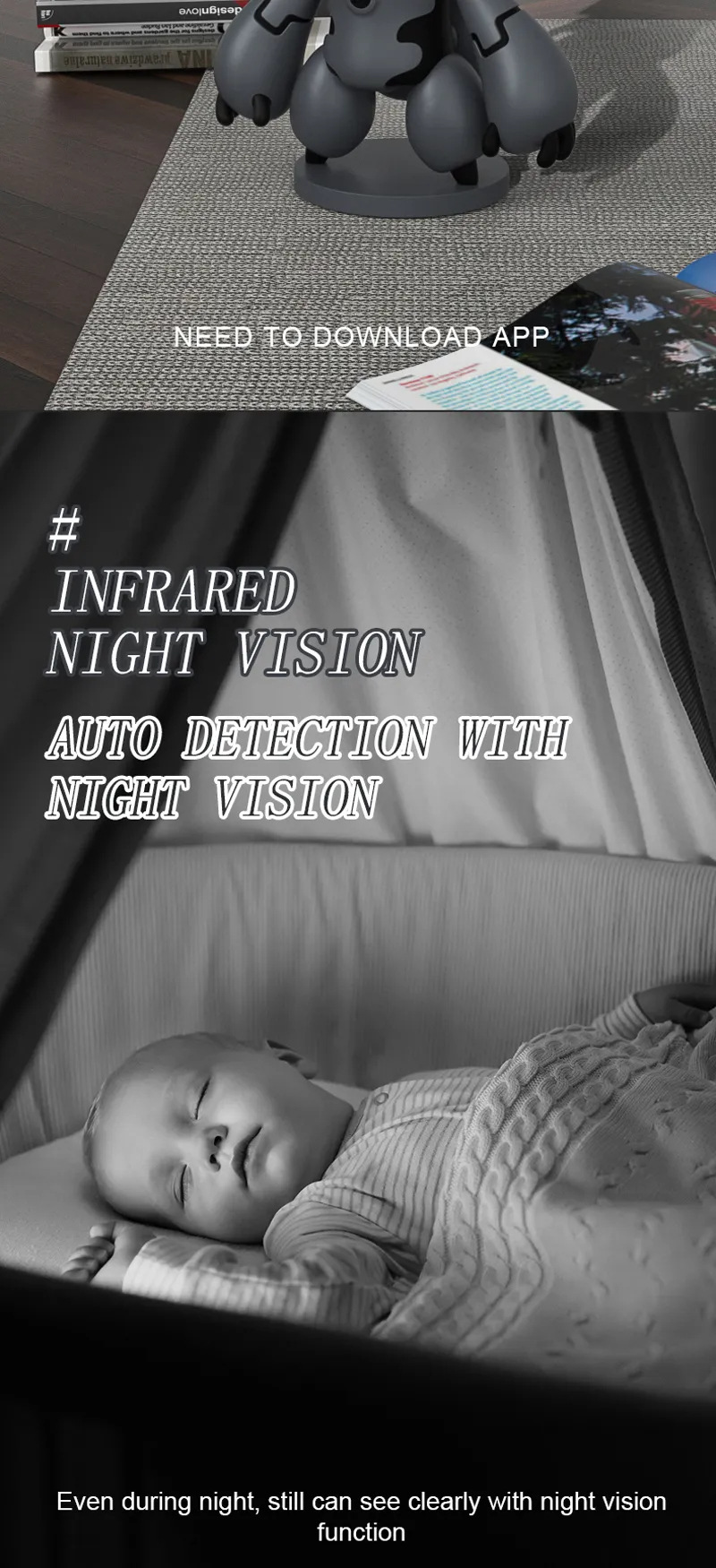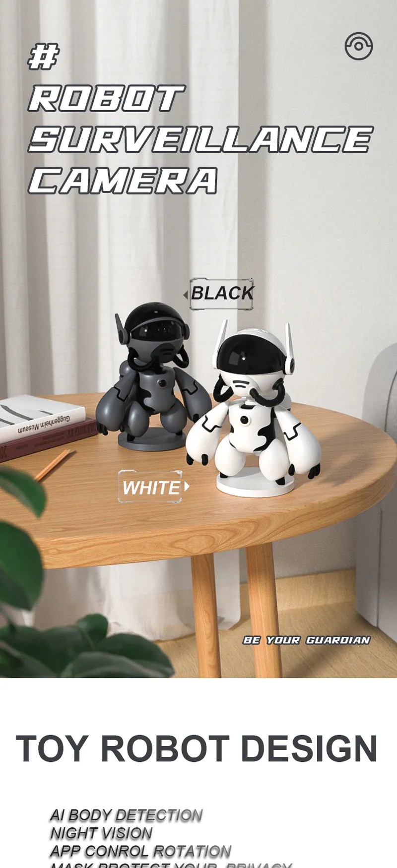 국경 간 지능형 고화질 4K 저전력 소비 로봇 PIR 카메라 360도 회전 Wi-Fi 연결 카메라