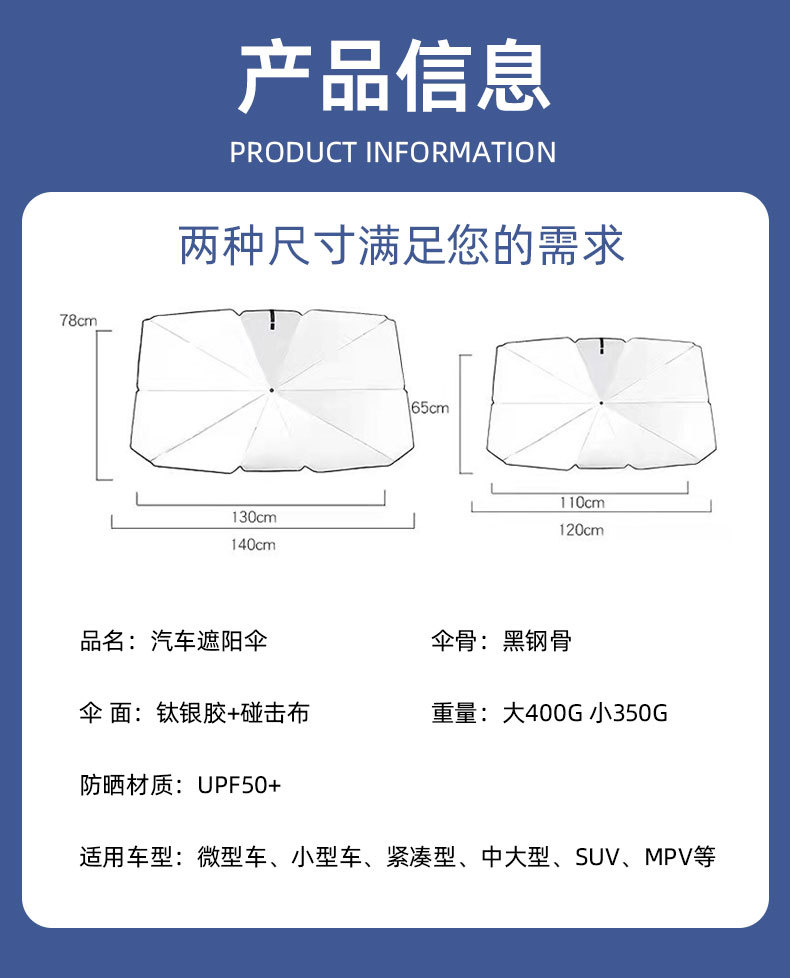재고 자동차 차양 선 스크린 단열 자동차 앞 유리 차양 접이식 3 배 자동차 우산