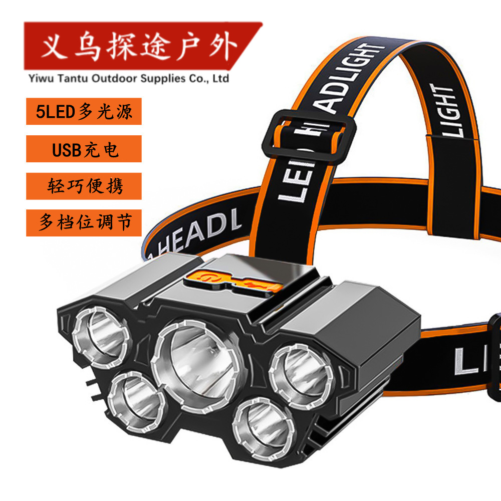 강력한 라이트 헤드램프, 긴 배터리 수명, 리튬 배터리, USB 충전, 매우 밝은 장거리 조명, 야외 등산, 낚시, 비상 조명
