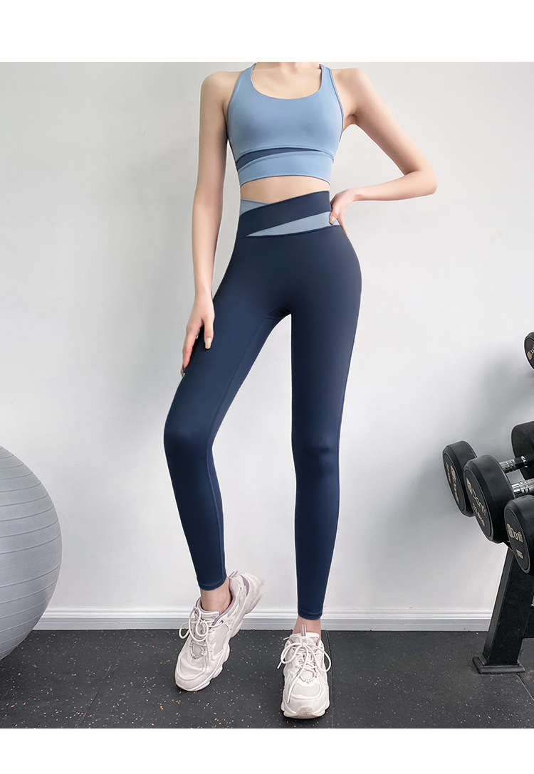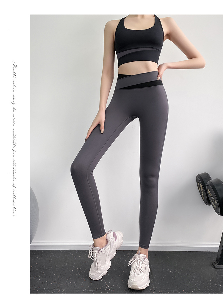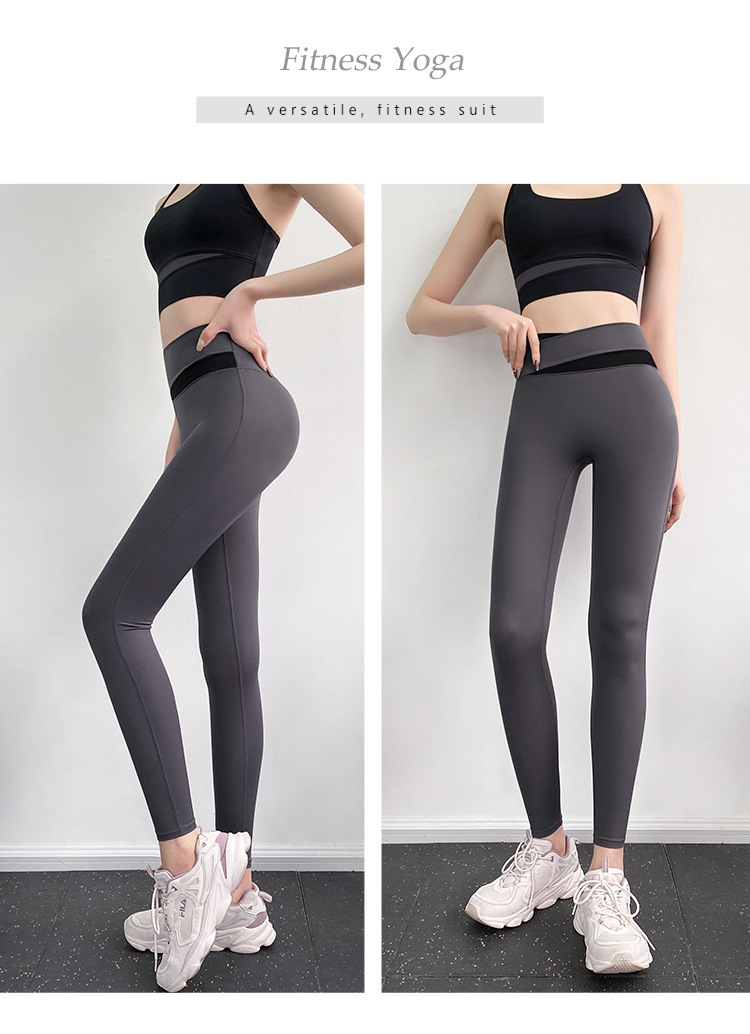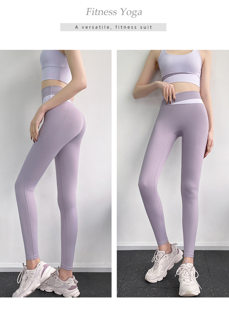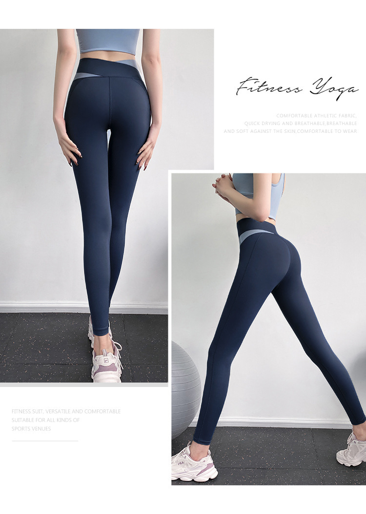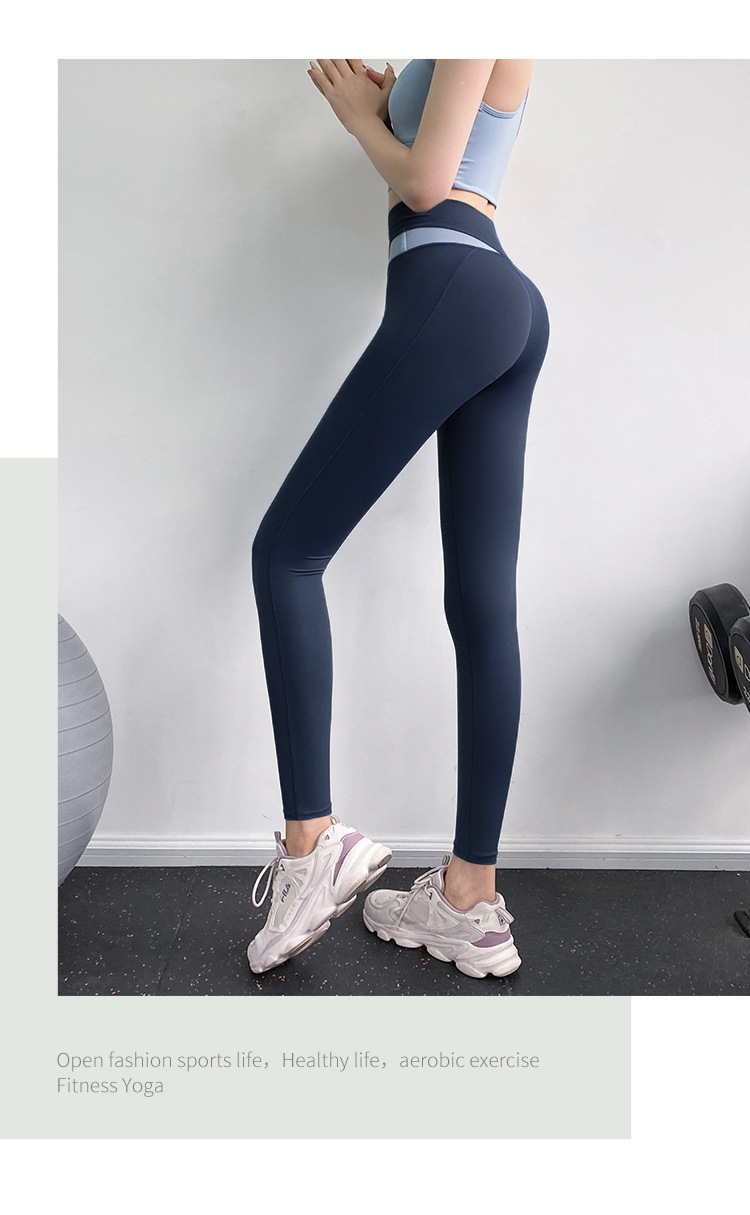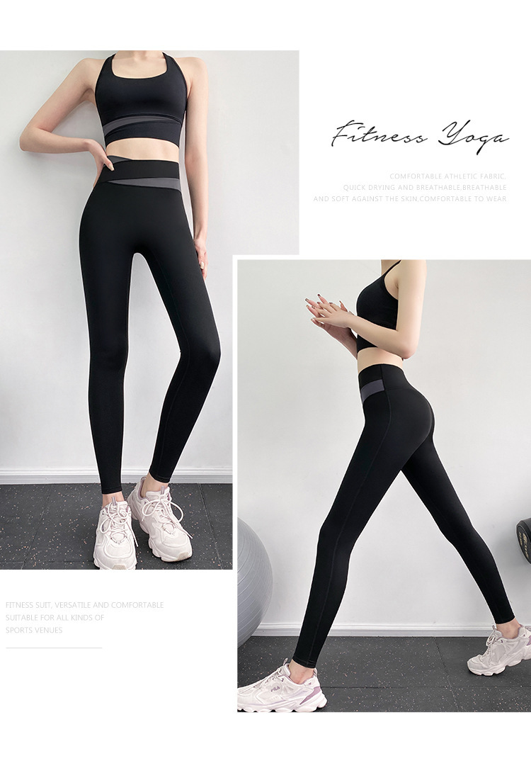 피트니스 바지 여성용 여름 하이 웨이스트 엉덩이 꽉 슬리밍 스포츠 바지 유행 통기성 대비 색상 스티칭 요가 바지