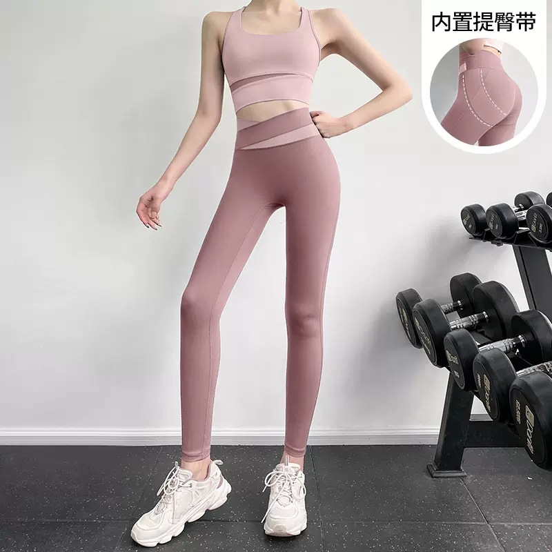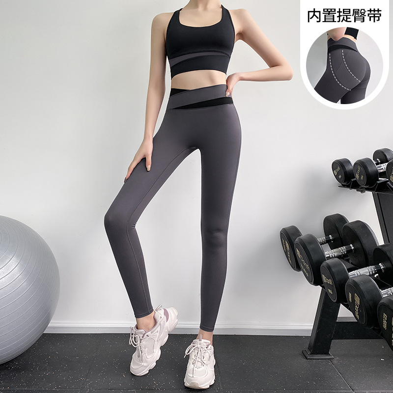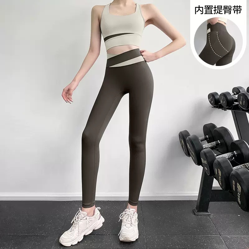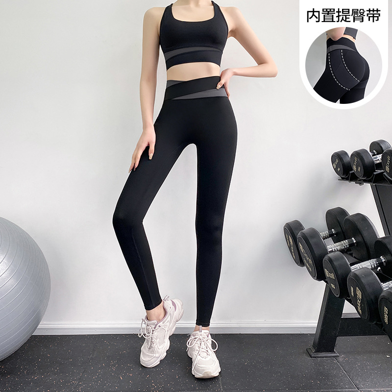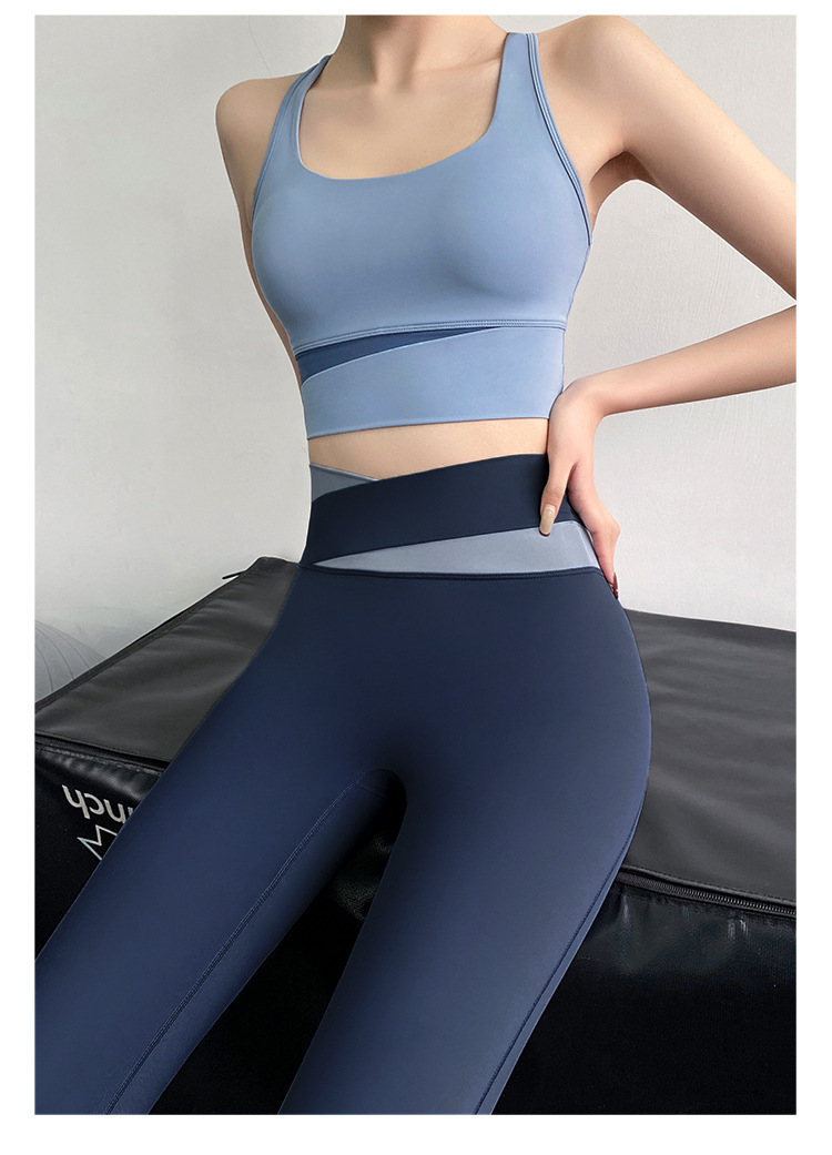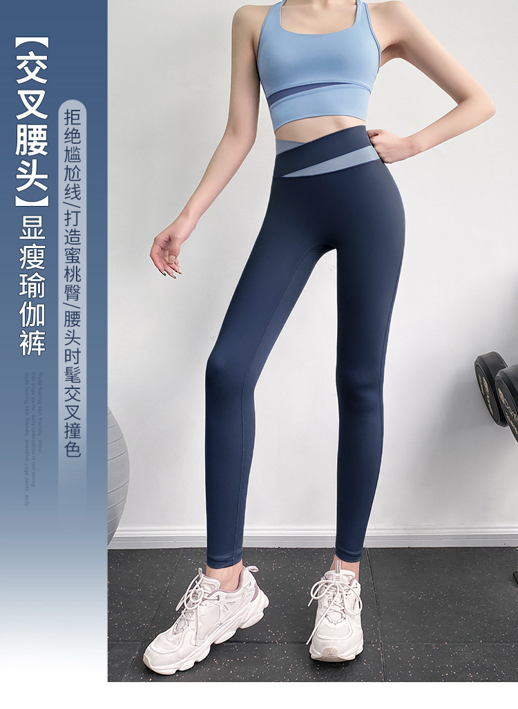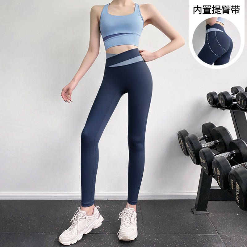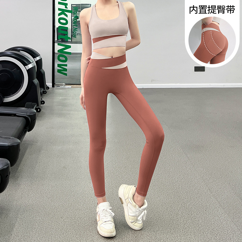 피트니스 바지 여성용 여름 하이 웨이스트 엉덩이 꽉 슬리밍 스포츠 바지 유행 통기성 대비 색상 스티칭 요가 바지