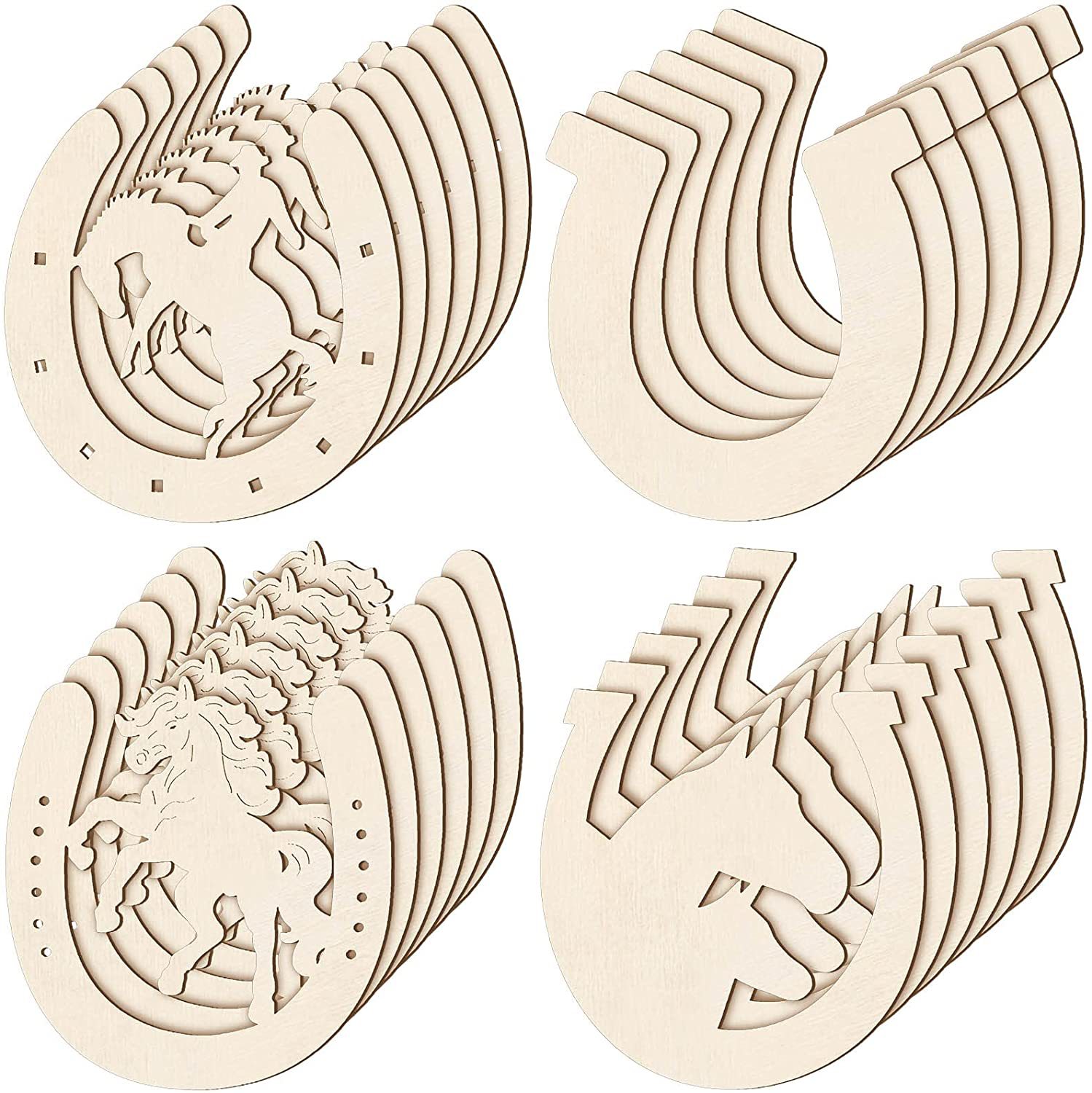 4 모양 나무 미완성 말굽 공예 DIY 나무 빈 말굽 파티 장식 공예 용품