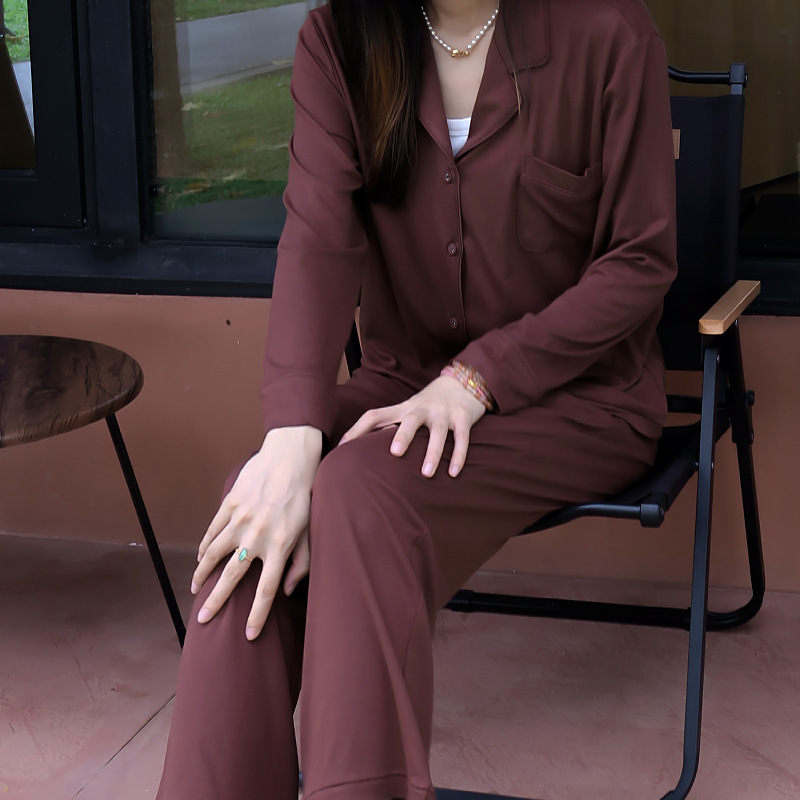 유럽과 미국 스타일의 단색 모달 초콜릿 컬러 스트레치 코튼 홈웨어 여성 하이 엔드 잠옷 가을, 겨울 긴 소매