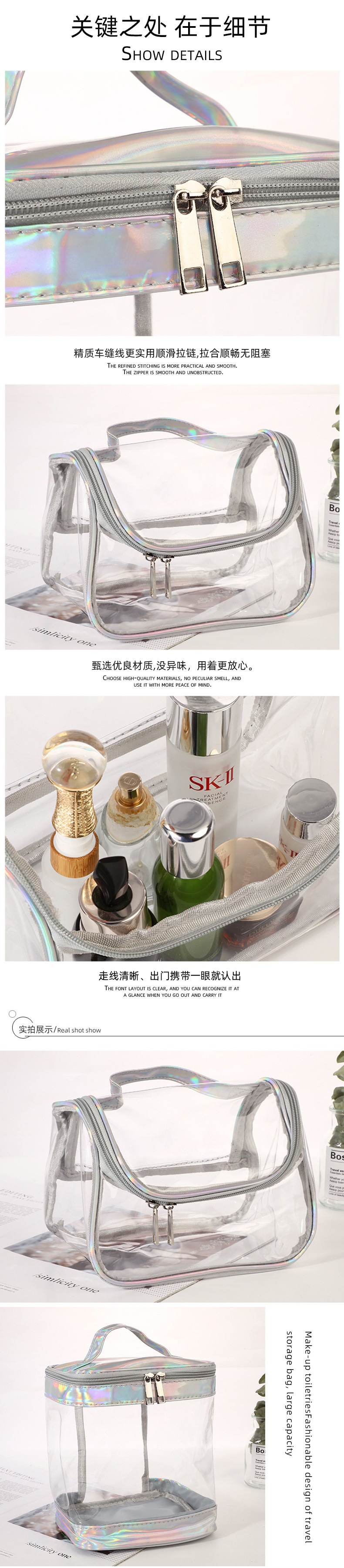 공장 용품 사이버 인기 레이저 신데렐라 화장품 가방 여행 휴대용 곡선 가방 대용량 세면도구 가방 투명 휴대용 보관스토어 가기