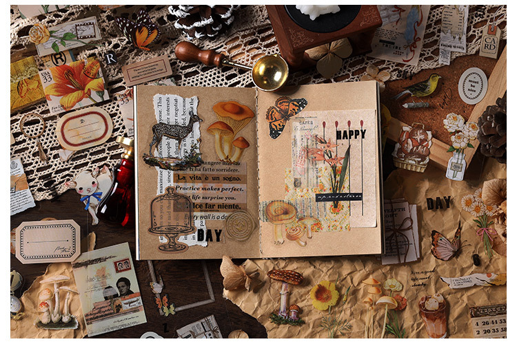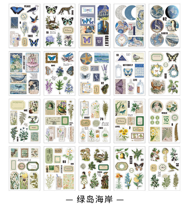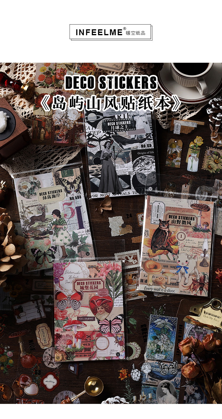 Infeel.Me PET 스티커 이 섬 산 스타일 시리즈 복고풍 일러스트 핸드북 소재 장식 스티커 4 스타일스토어 가기