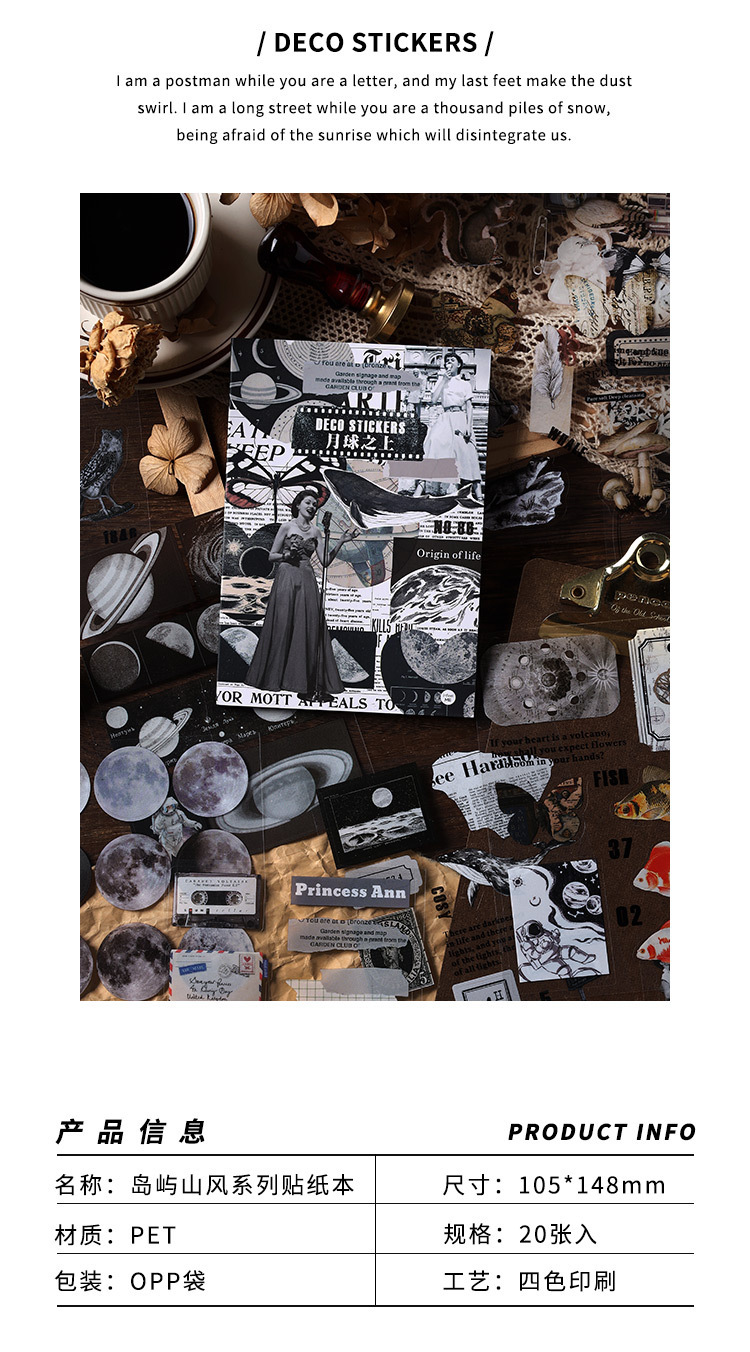 Infeel.Me PET 스티커 이 섬 산 스타일 시리즈 복고풍 일러스트 핸드북 소재 장식 스티커 4 스타일