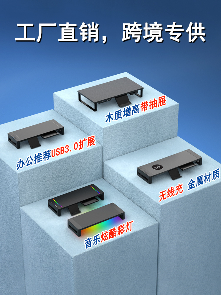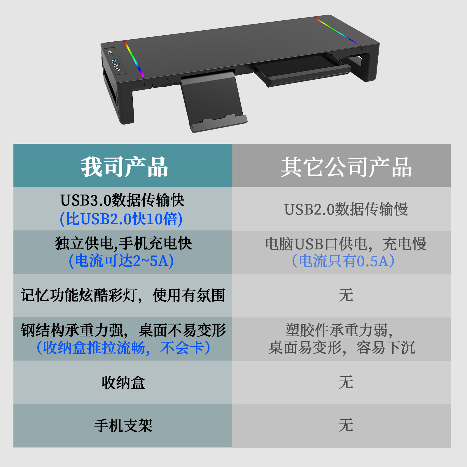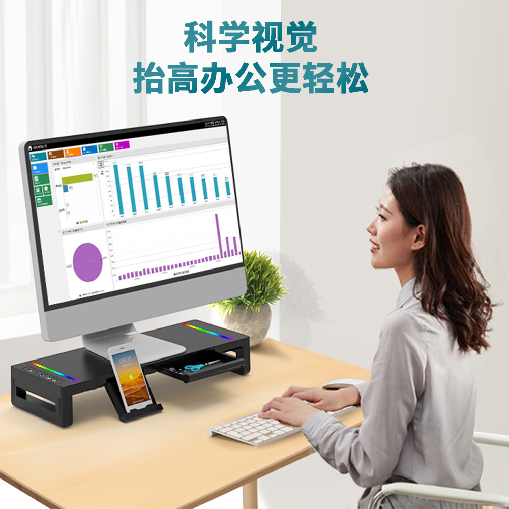 국경 간 데스크탑 컴퓨터 모니터 강화 랙 다기능 USB 확장 컬러 조명 데스크탑 스토리지 디스플레이 기반스토어 가기