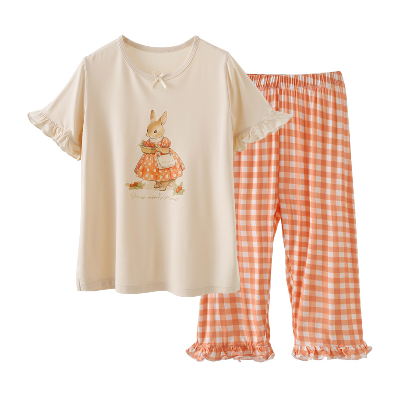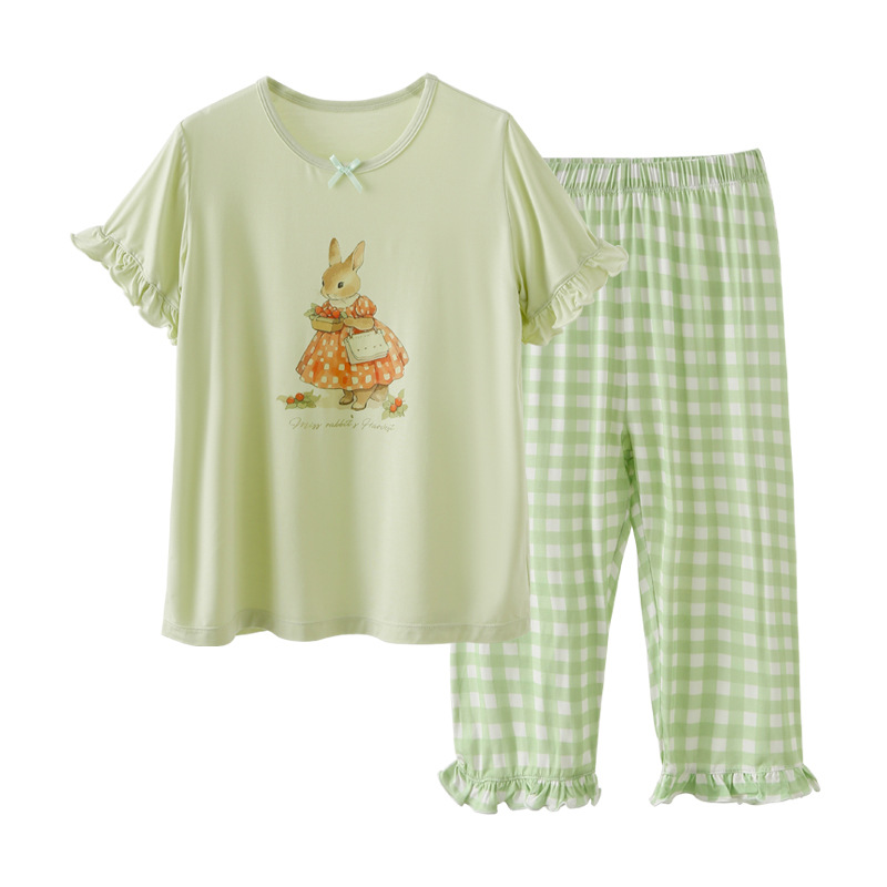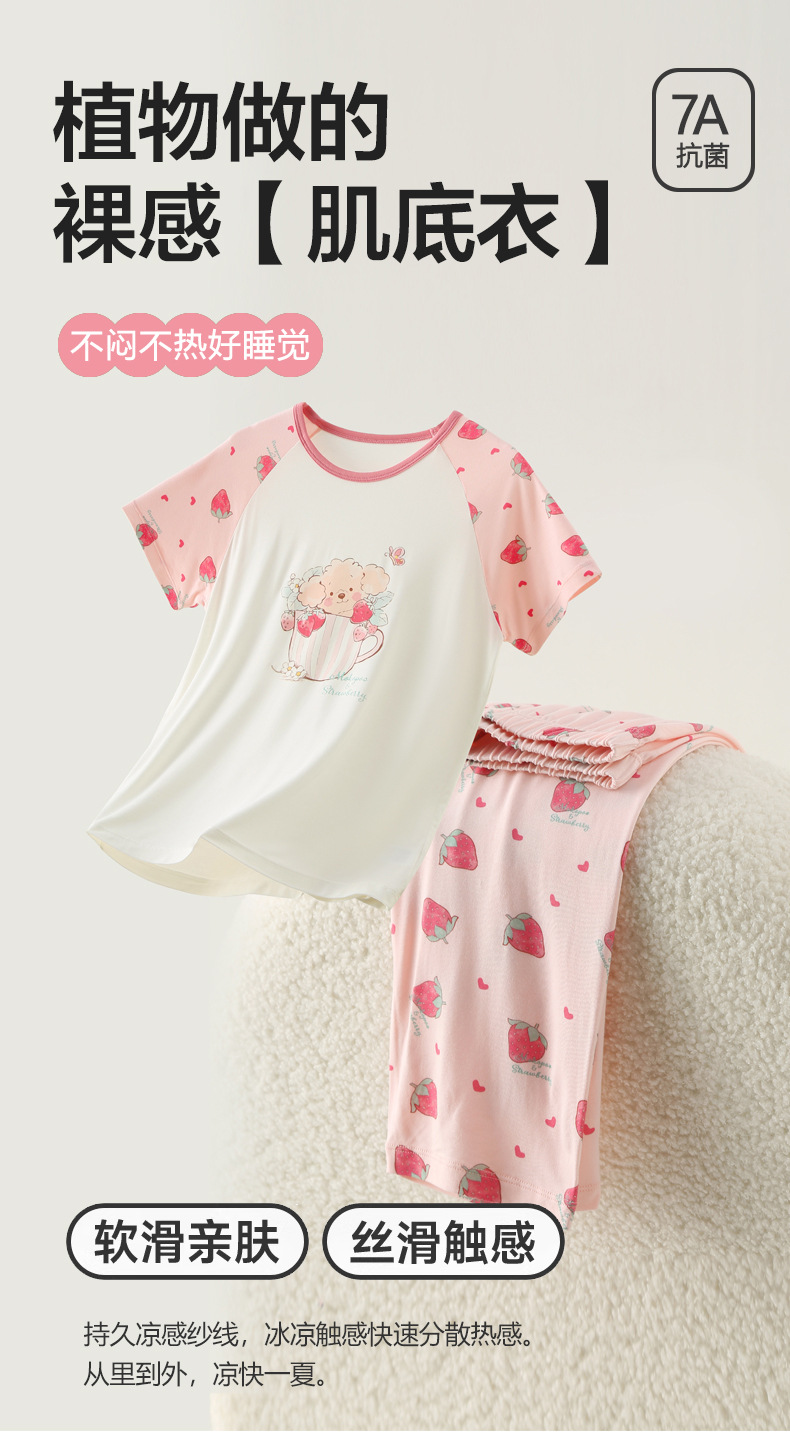 소녀 잠옷 세트 여름 얇은 모달 가정 옷 클래스 A 2025 새로운 어린이 7 소매 에어컨 옷스토어 가기
