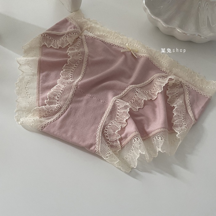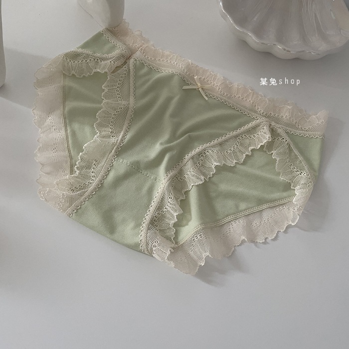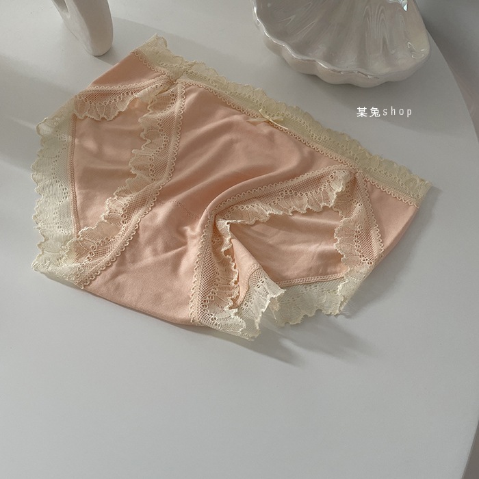 일본식 모달 속옷 여성용 로우 웨이스트 하이 포크 레이스 에지 소녀의 캔디 컬러 순면 가랑이 팬티 여성용 팬티스토어 가기