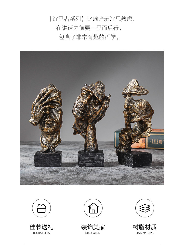 복고풍 침묵은 황금 사상가 조각 상점 카운터 상점 장식 거실 침실 베란다 선물 장식품입니다