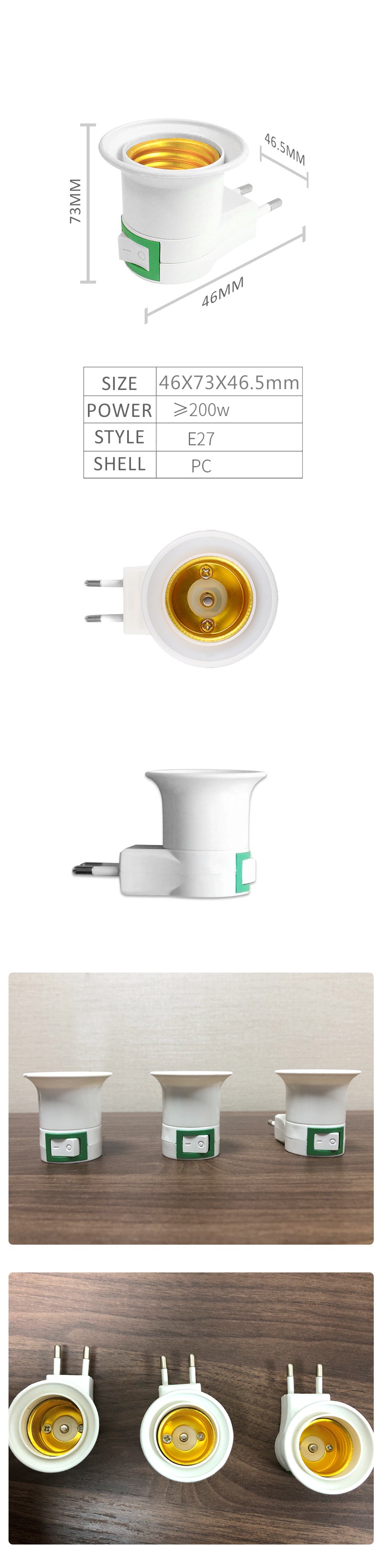 • 스위치가있는 E27 유럽 게이지베이스