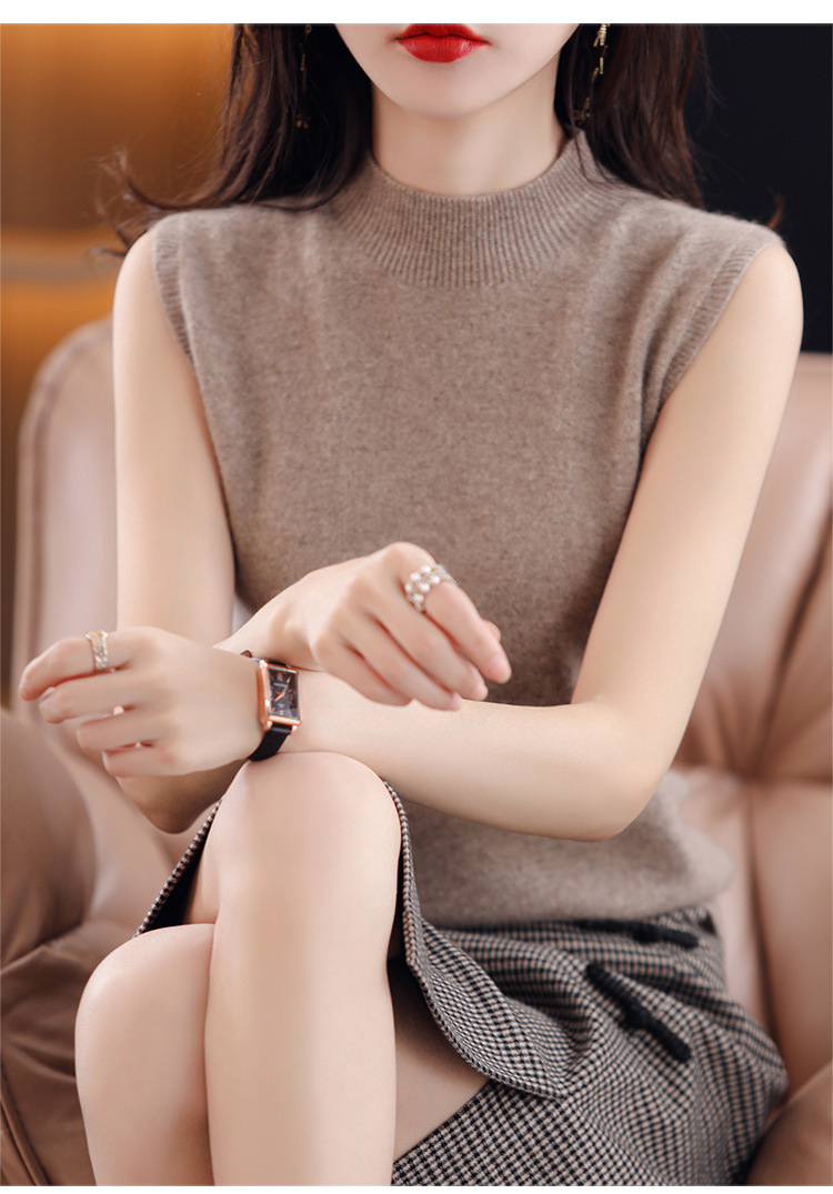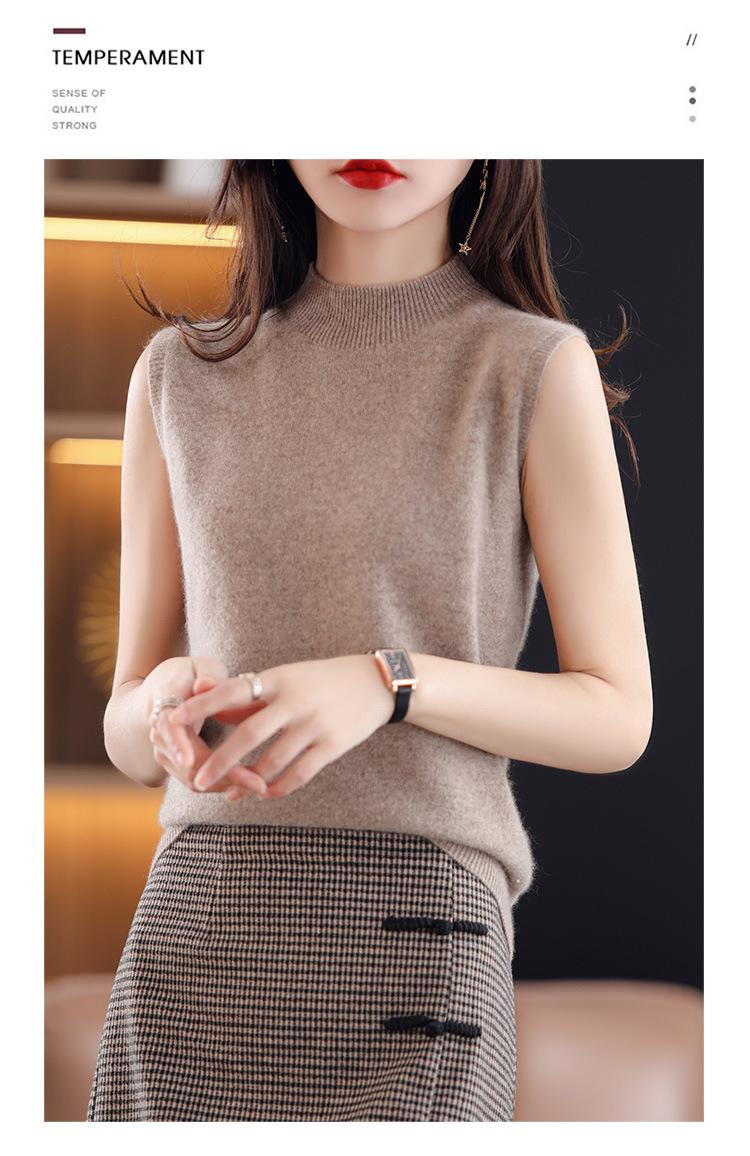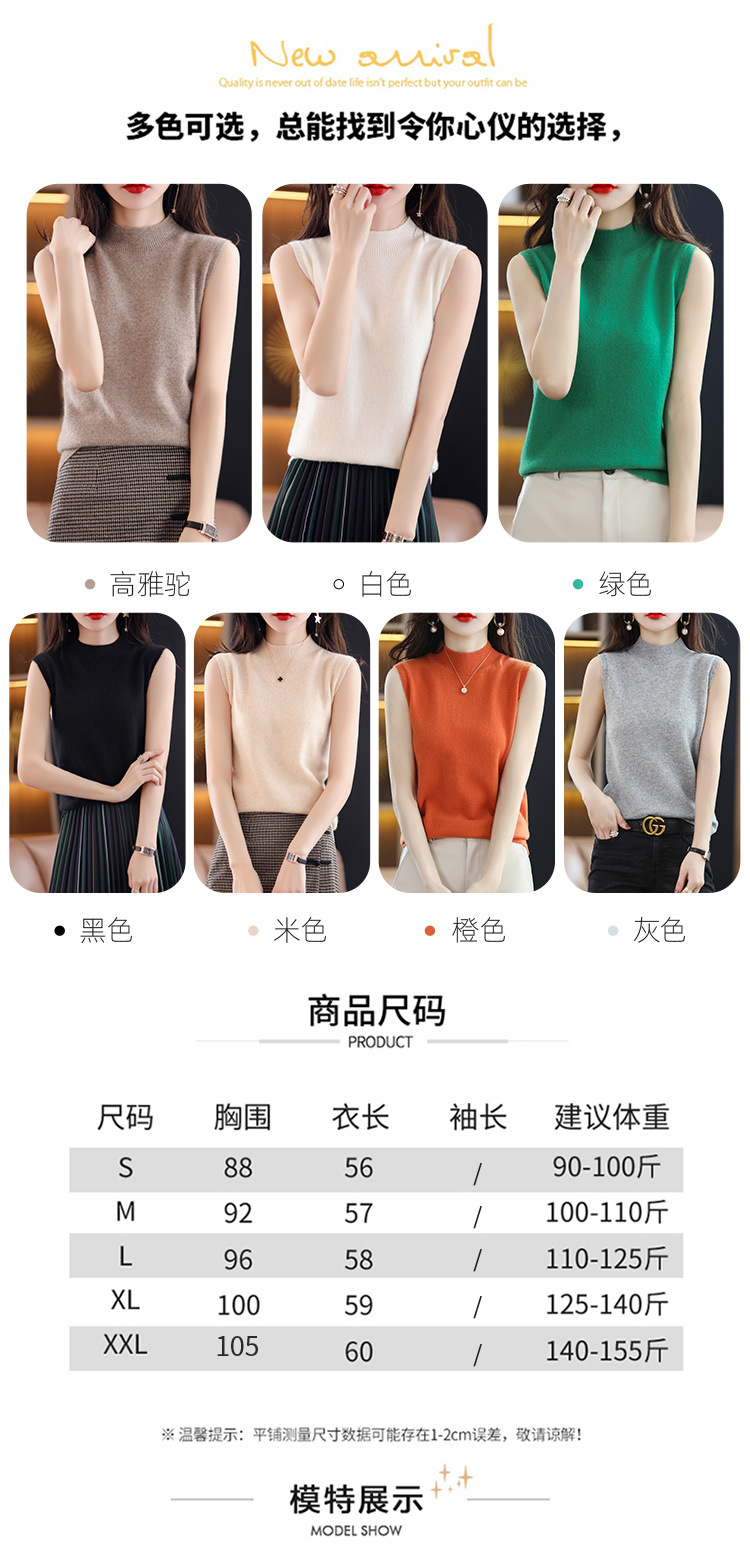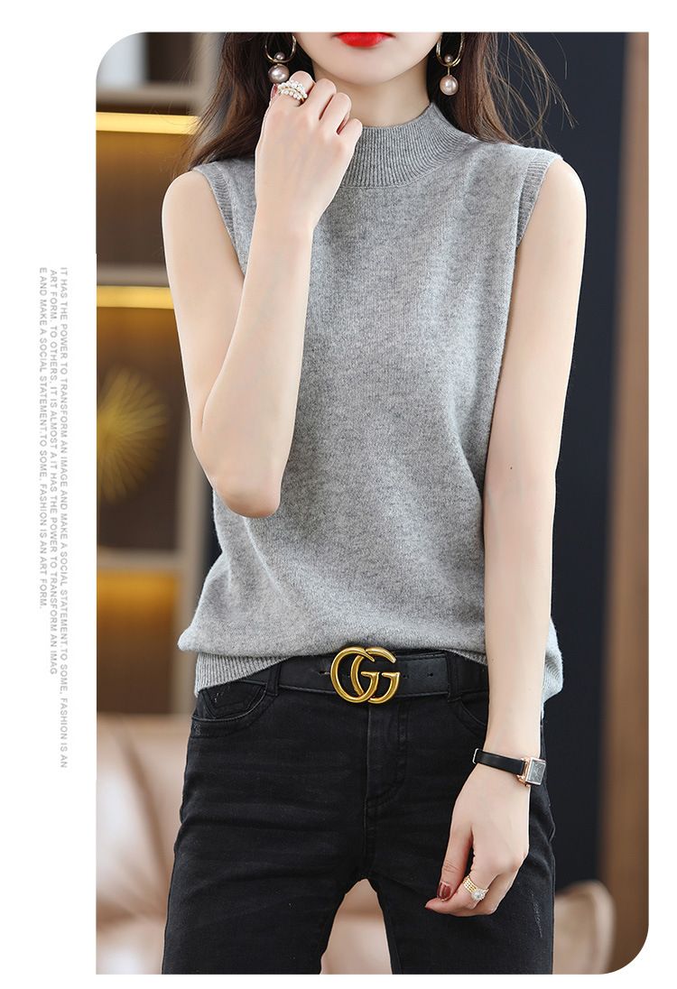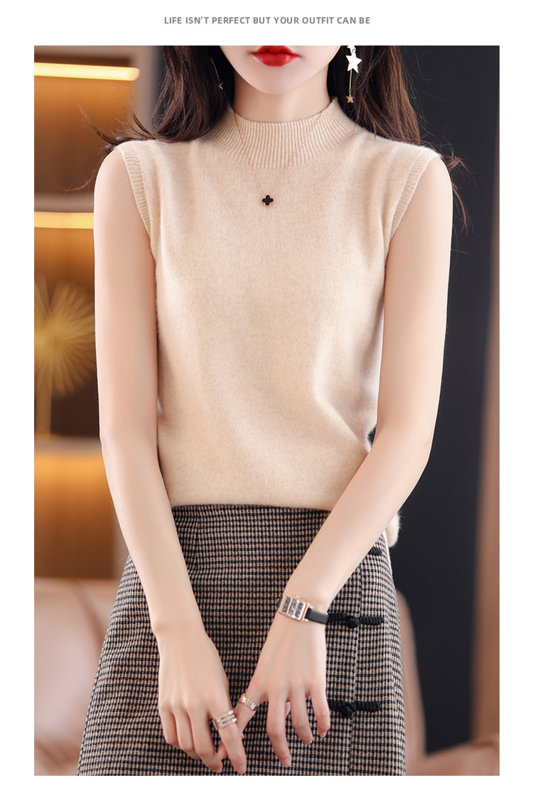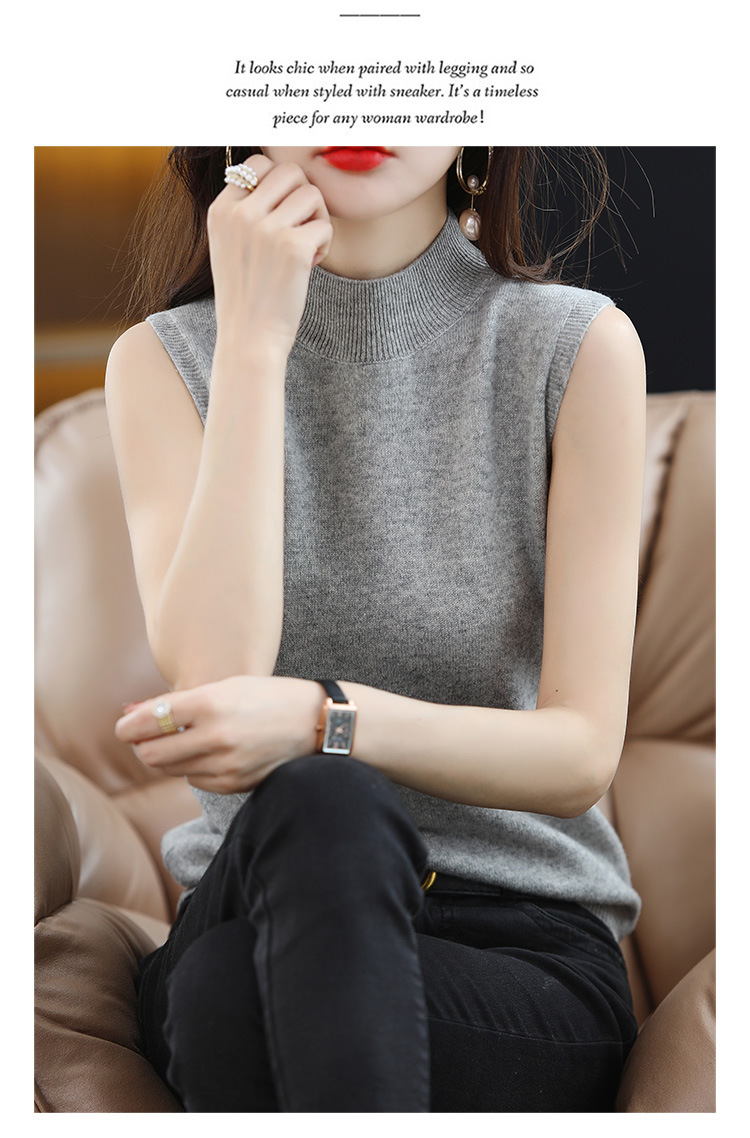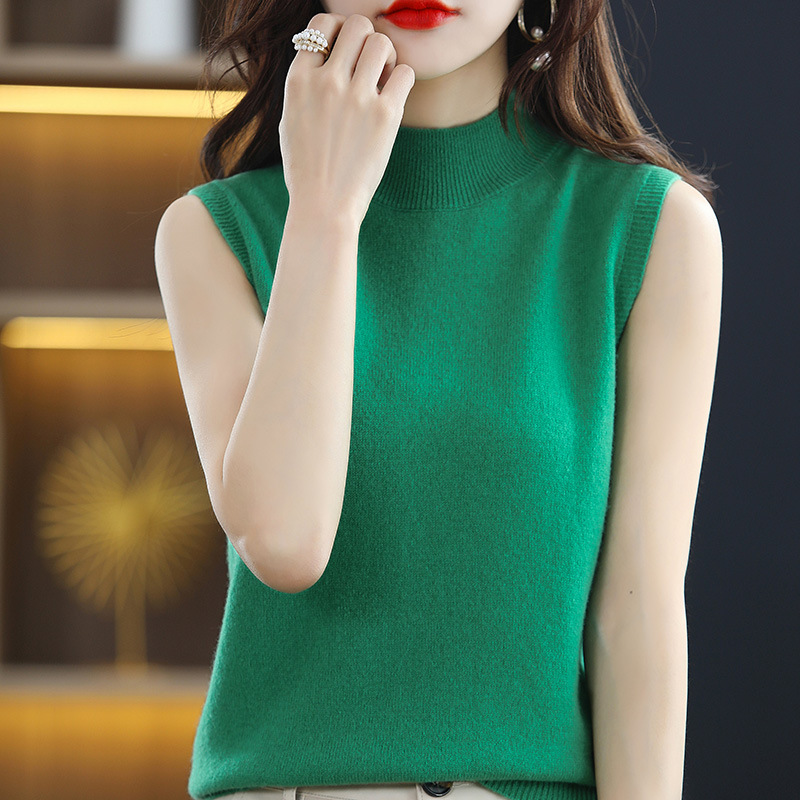 여성용 하프 하이 칼라 조끼 민소매 베이스 셔츠 이너웨어 가을 블랙 베이스 셔츠 느슨한 니트 탑 겉옷 여름스토어 가기
