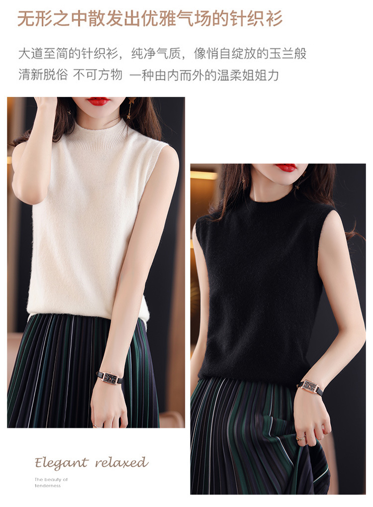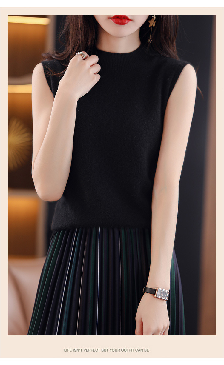 여성용 하프 하이 칼라 조끼 민소매 베이스 셔츠 이너웨어 가을 블랙 베이스 셔츠 느슨한 니트 탑 겉옷 여름