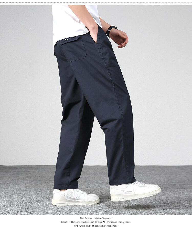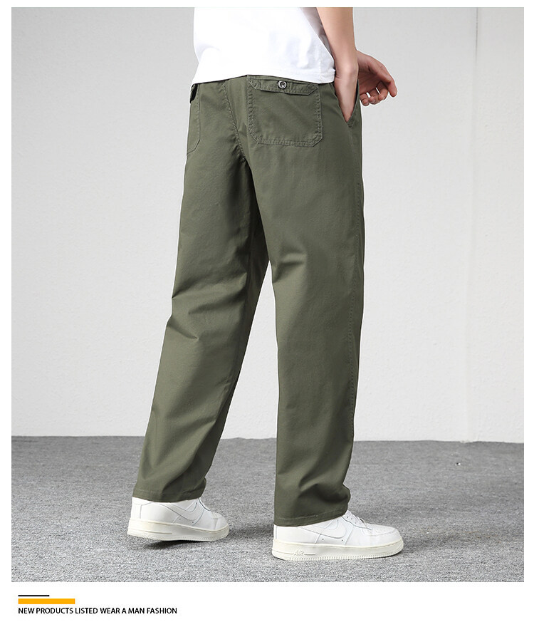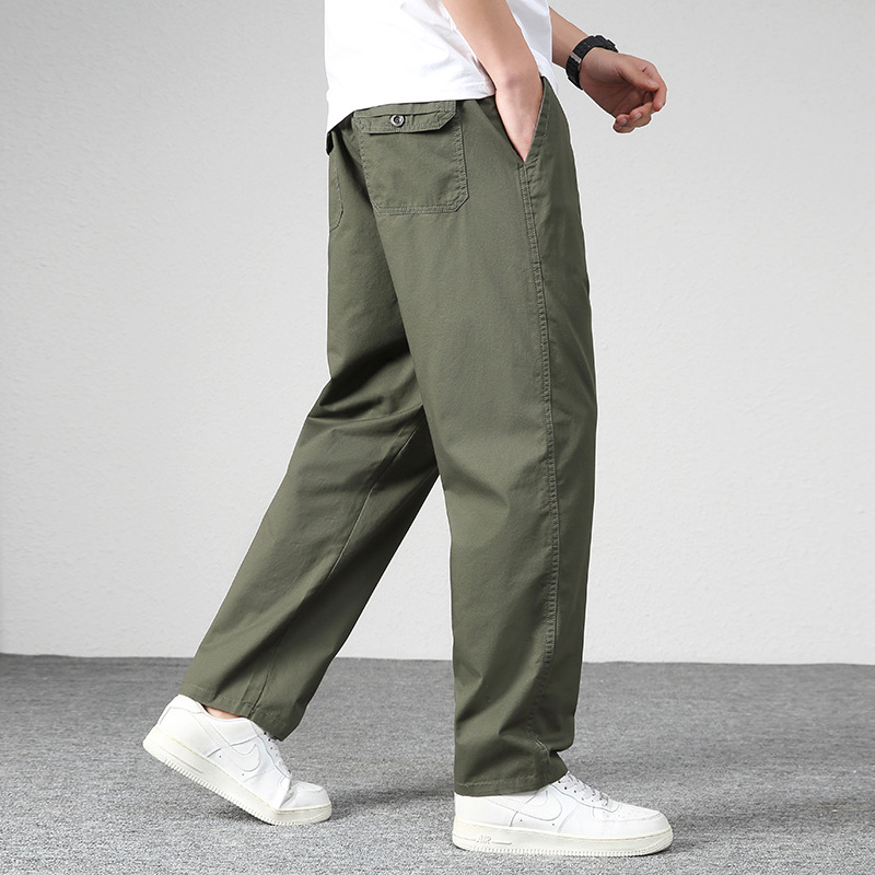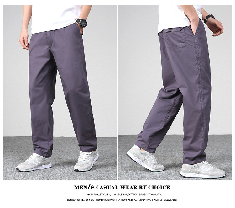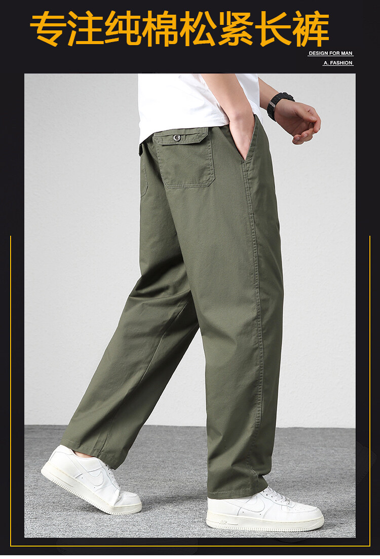남성용 스트레이트 팬츠 중년 아빠 바지 순면 신축성 바지 봄 가을 작업복 바지 통기성 다용도 캐주얼 패션스토어 가기