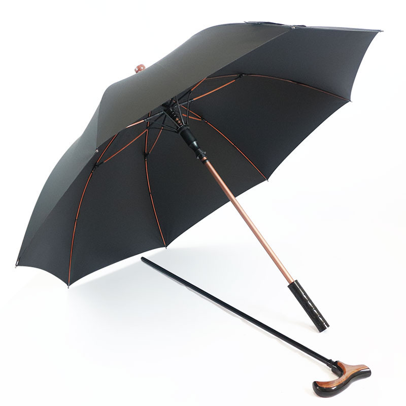 일본산 블랙글로시 파라솔, 긴 손잡이 우산, 등산용 노인용 우산, 지팡이 우산, 로고 인쇄 가능, 자외선 차단 우산, 태양 우산