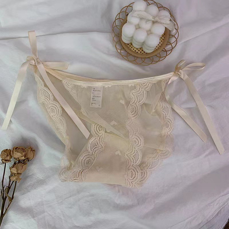 섹시한 숙녀 속옷 일본 스타일 달콤한 레이스 업 활 원근법 레이스 여성용 초박형 팬티 크로스 보더