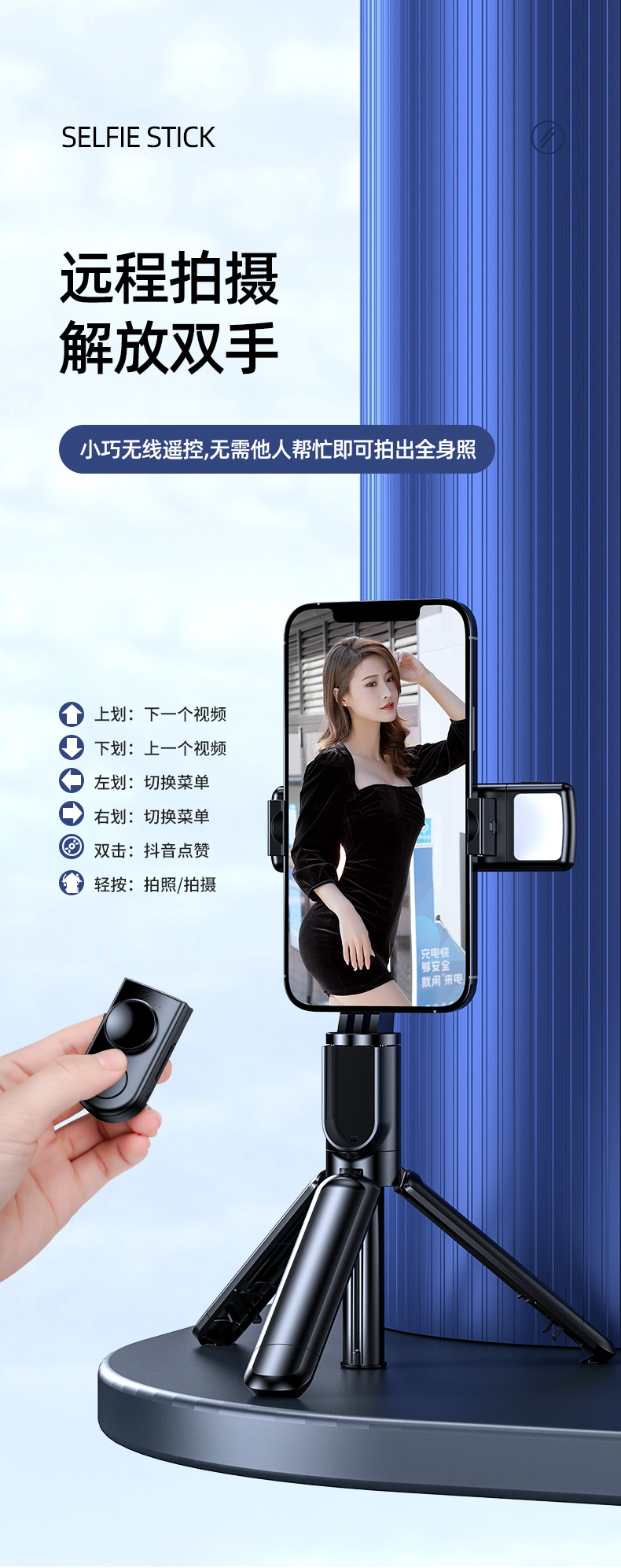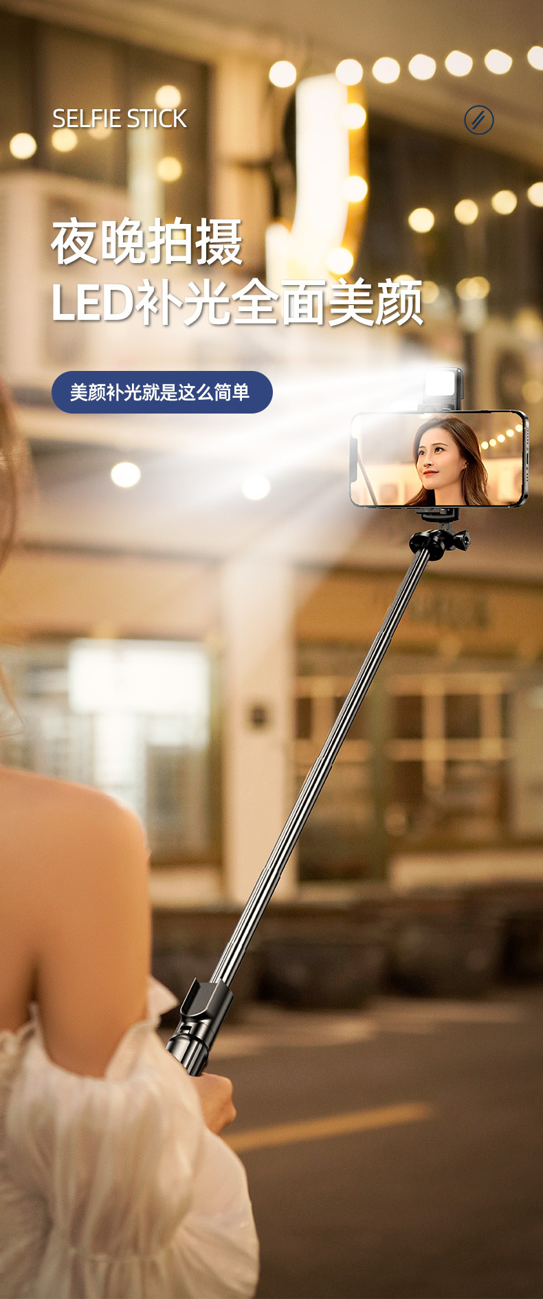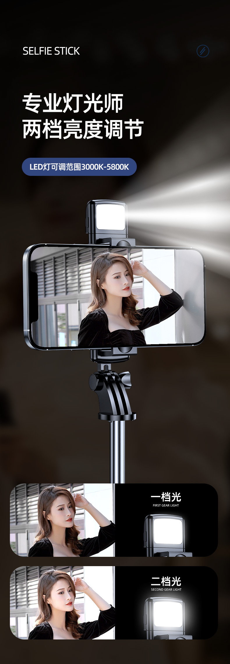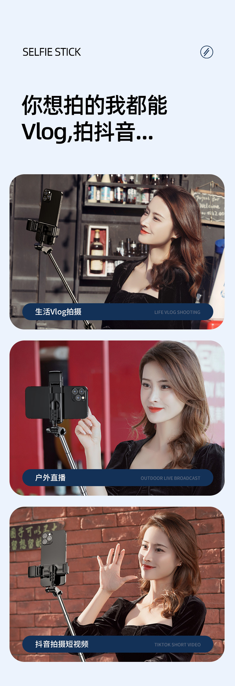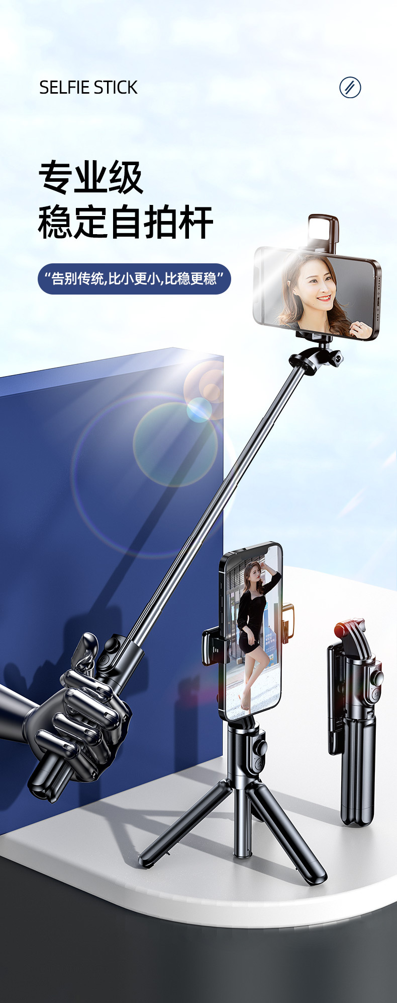 공장 도매 새로운 트레몰로 블루투스 셀카 스틱 휴대 전화 범용 카메라 유물 빛 삼각대 셀카 스틱스토어 가기