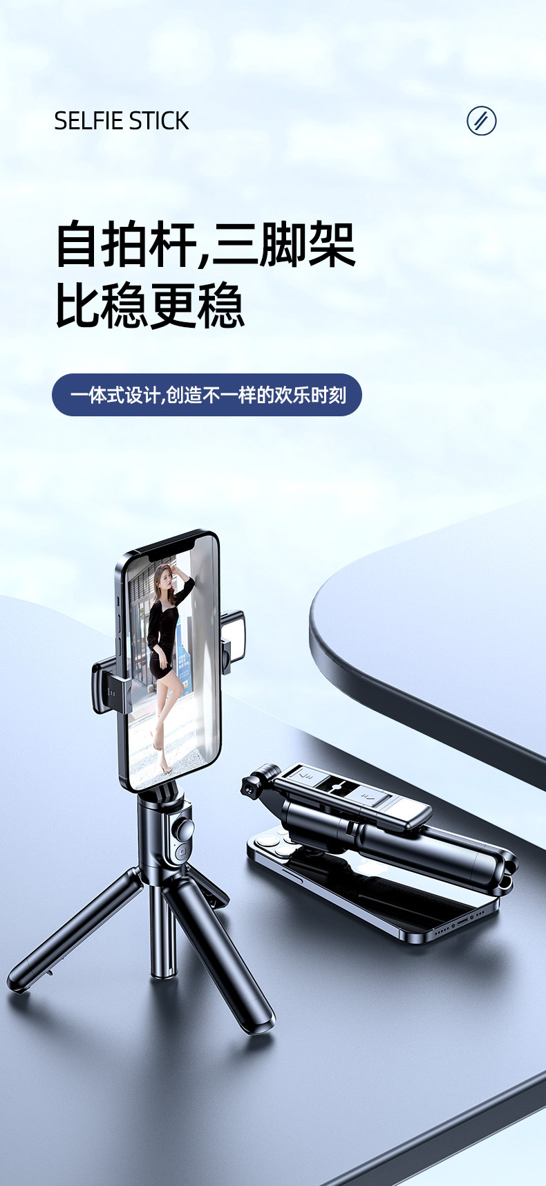 공장 도매 새로운 트레몰로 블루투스 셀카 스틱 휴대 전화 범용 카메라 유물 빛 삼각대 셀카 스틱