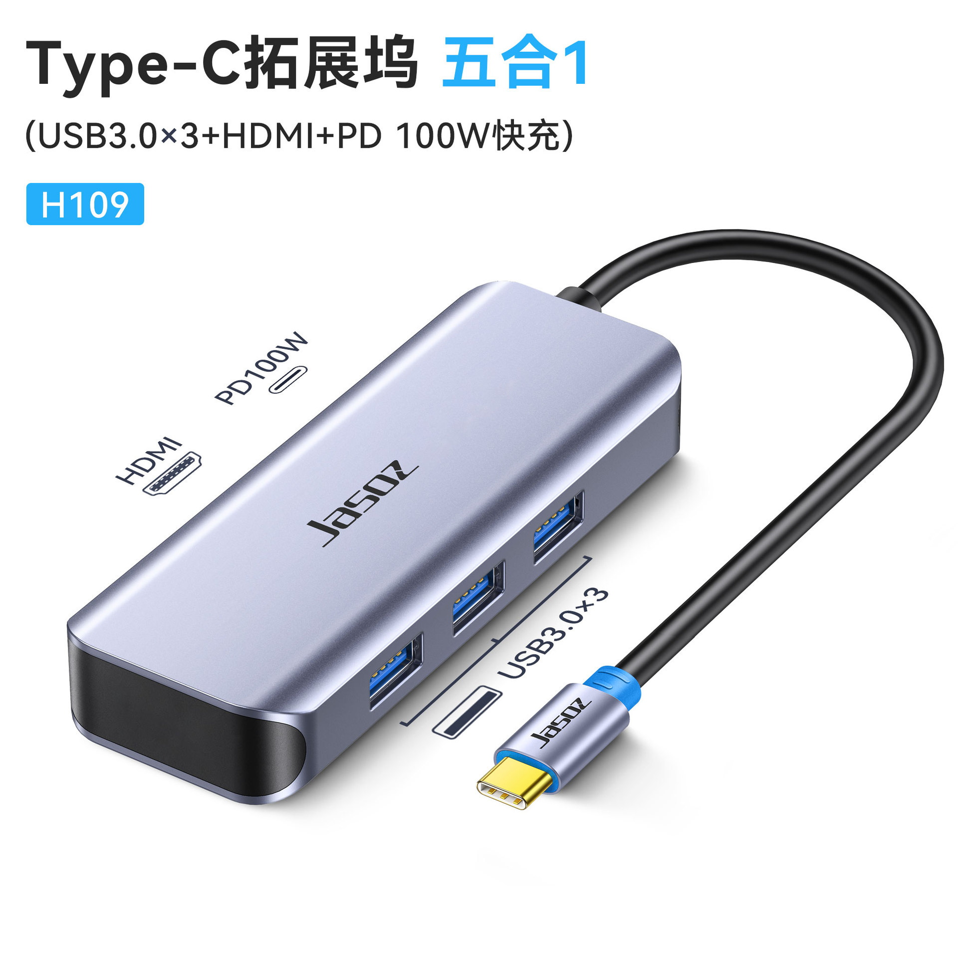 • H109 Type-C 5-in-one USB3.0 * 3 + HDMI + PD100W