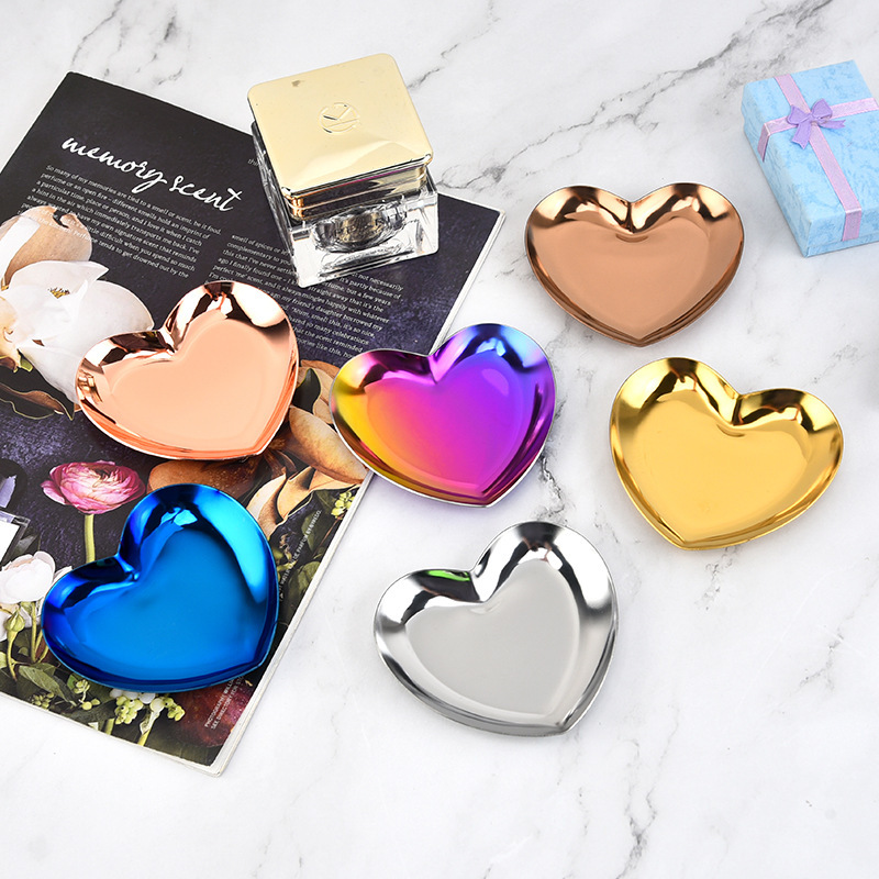 북유럽 스테인레스 스틸 하트 모양의 트레이 가정용 딤섬 과자 작은 접시 보관 트레이 보석 보관 트레이스토어 가기