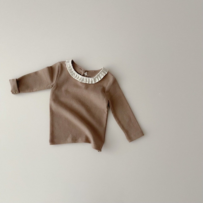 INS 아기와 유아의 귀여운 주름 연잎 칼라 티셔츠 소녀의 달콤한 공주 슬림핏 베이스 셔츠스토어 가기