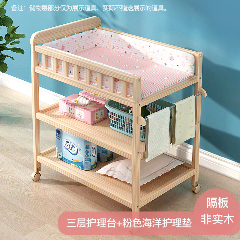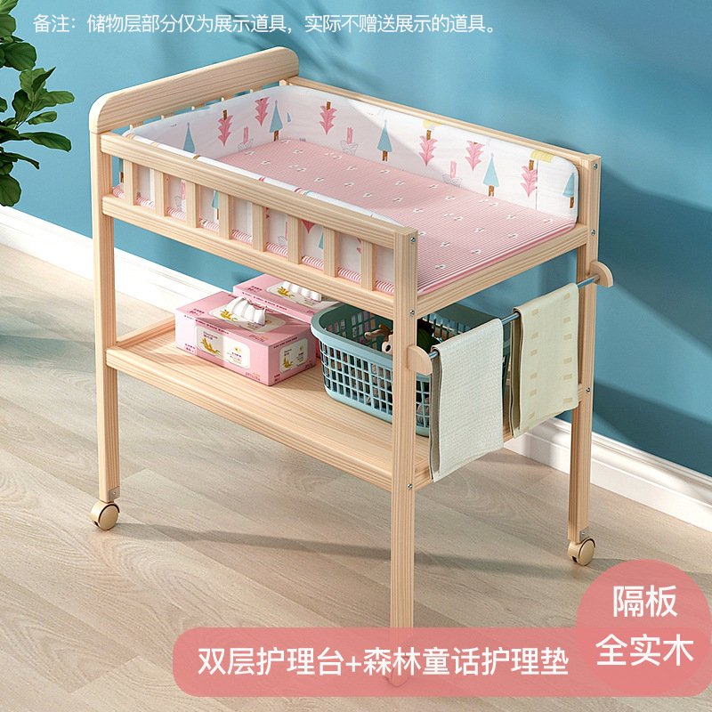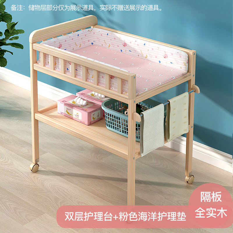 • 더블 레이어 기저귀 테이블 (모든 단단한 나무 파티션) + 핑크 마린 간호 패드