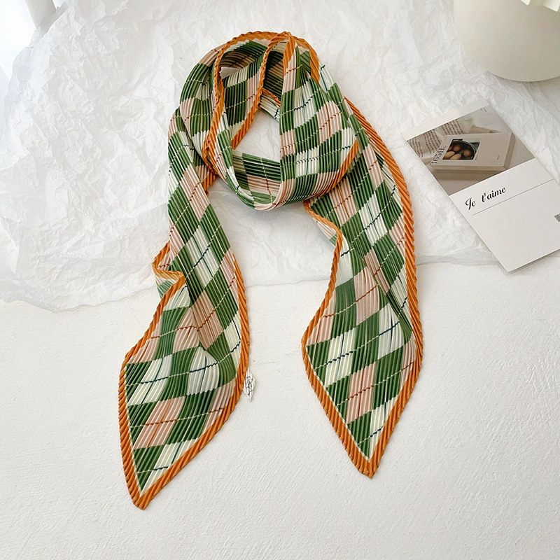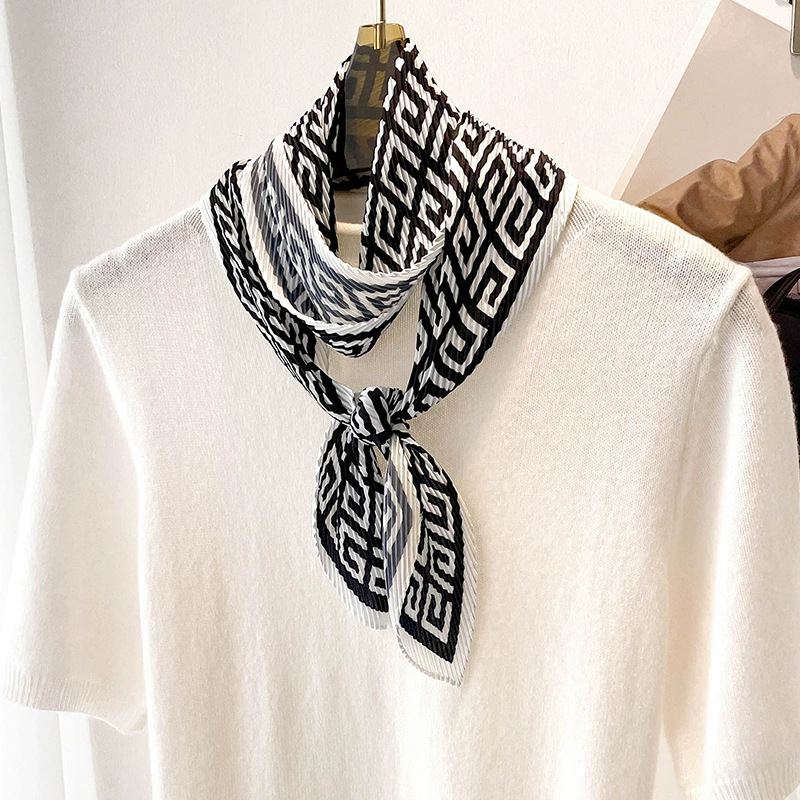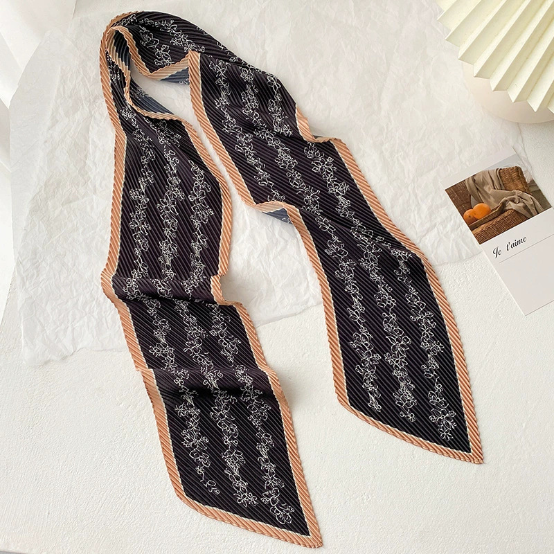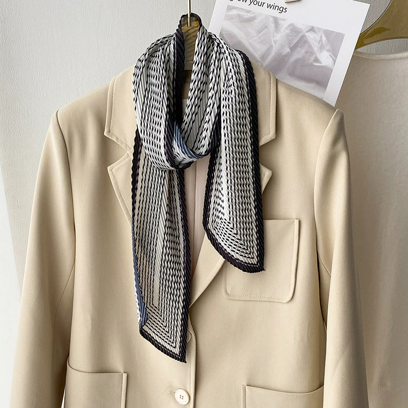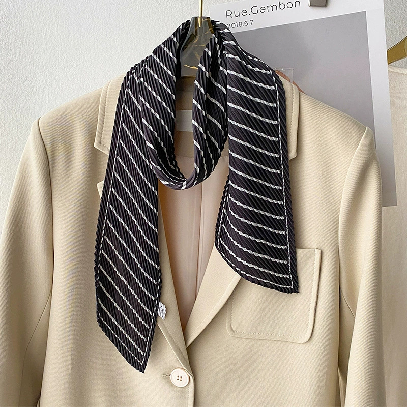 2022 봄과 가을 새로운 크레이프 롱 스카프 여성용 유화 셔츠 스카프 작은 스카프 헤어 벨트 넥타이 리본