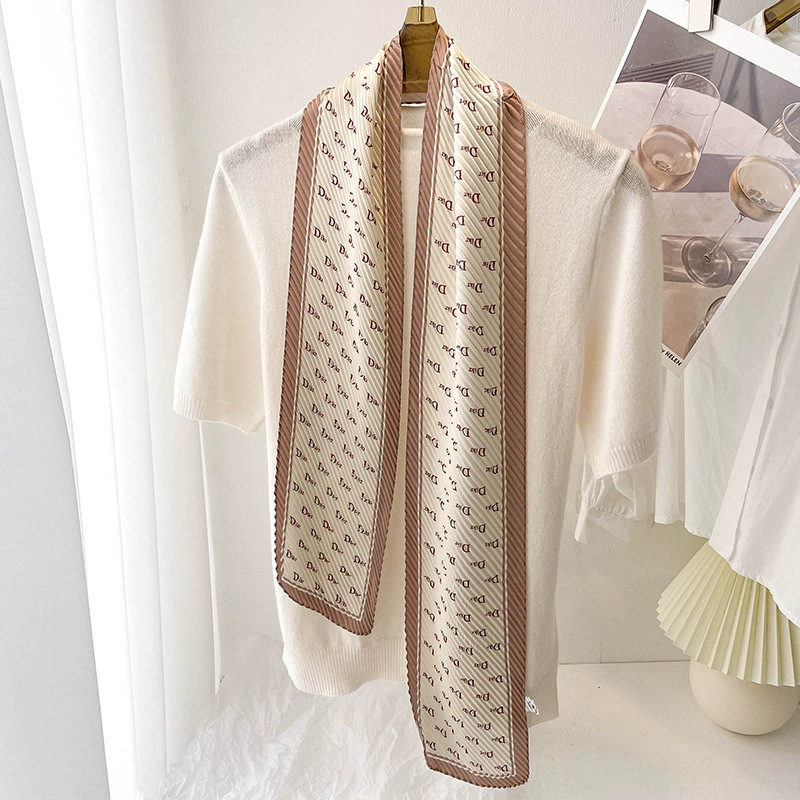 2022 봄과 가을 새로운 크레이프 롱 스카프 여성용 유화 셔츠 스카프 작은 스카프 헤어 벨트 넥타이 리본스토어 가기