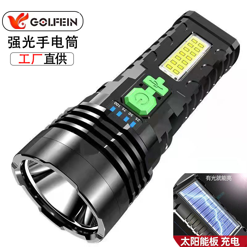 국경 간 강한 빛 손전등 충전식 COB 측면 조명 홈 조명 휴대용 서치 LED 태양열 충전식 램프스토어 가기