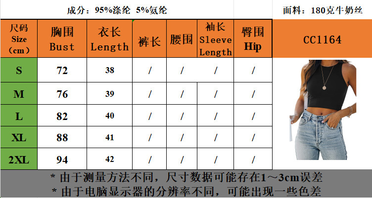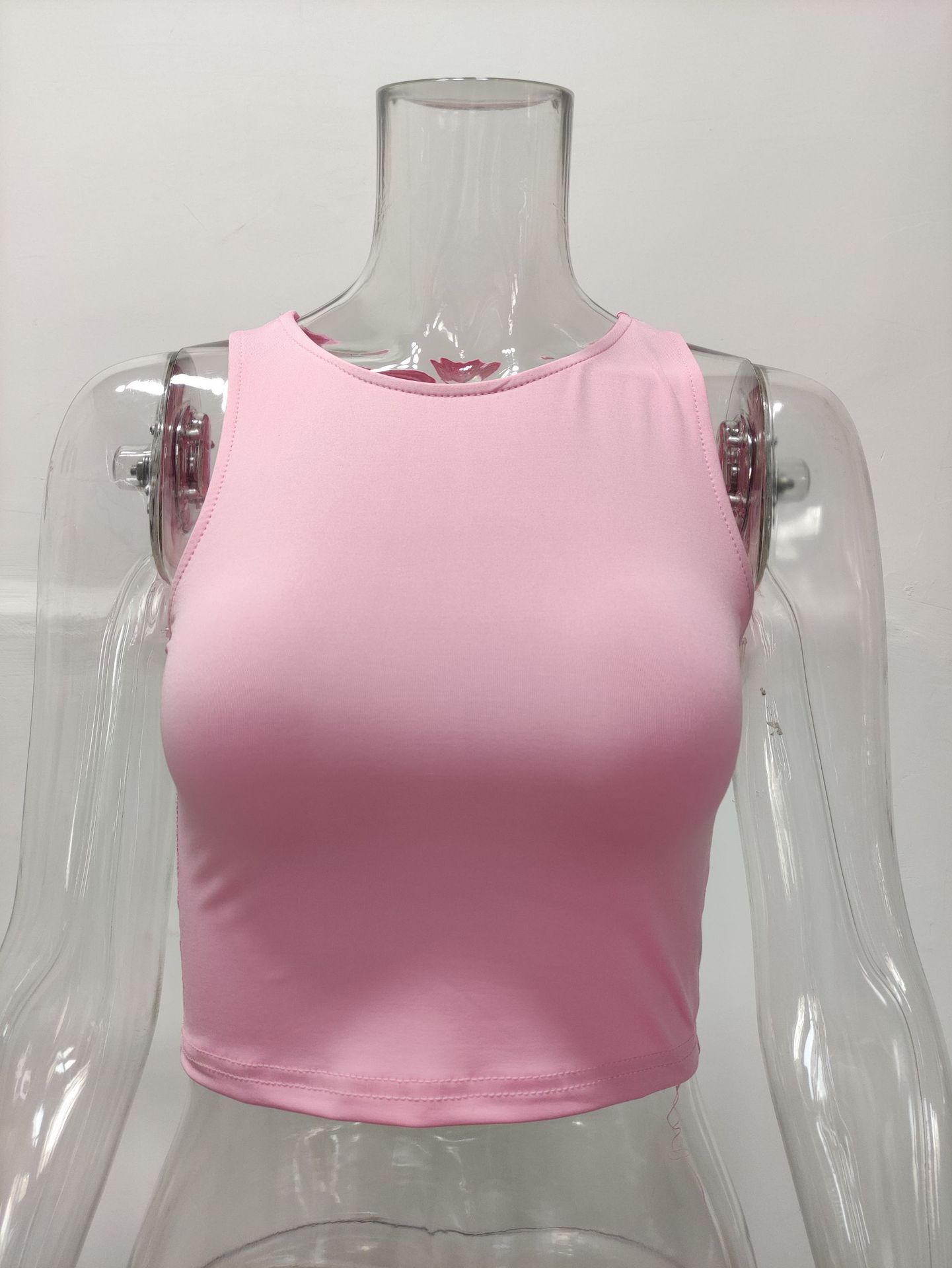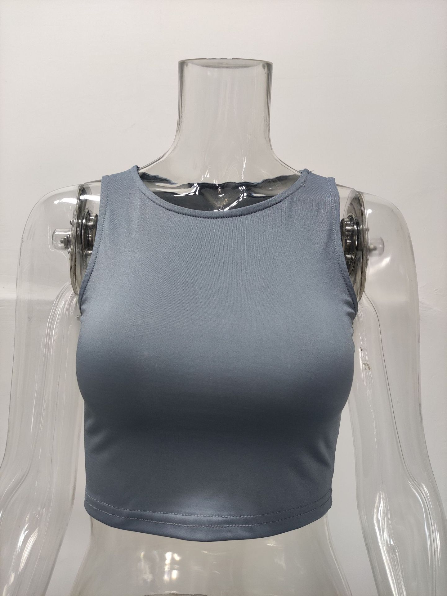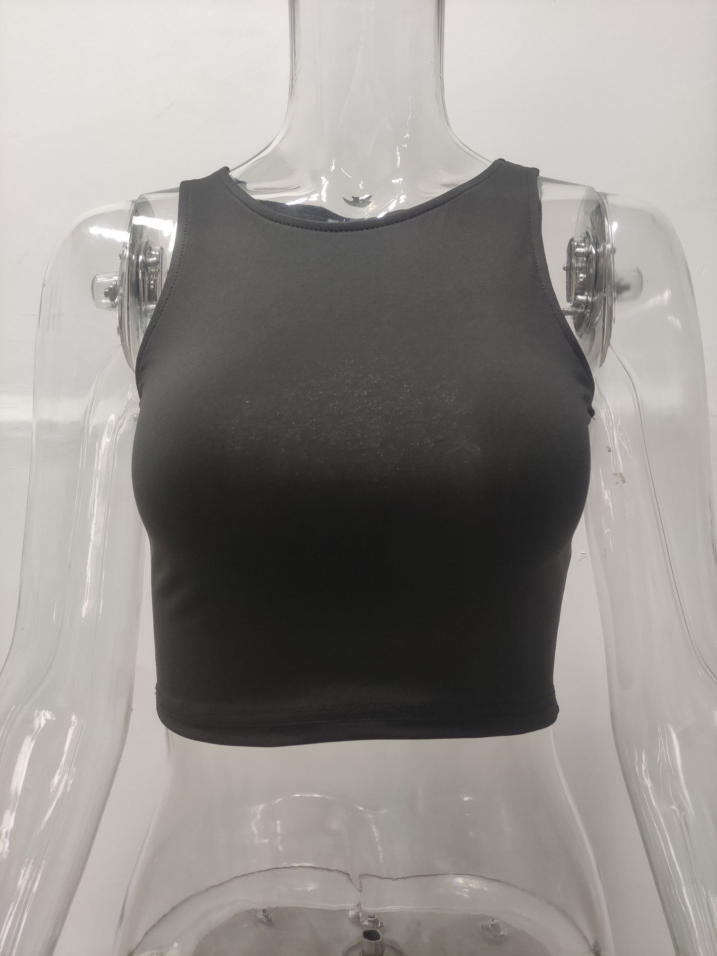 2023 여름 크로스 보더 아마존 단색 새로운 소원 유럽과 미국 민소매 승무원 목 I 자형 조끼 티셔츠 대외 무역 여성 의류