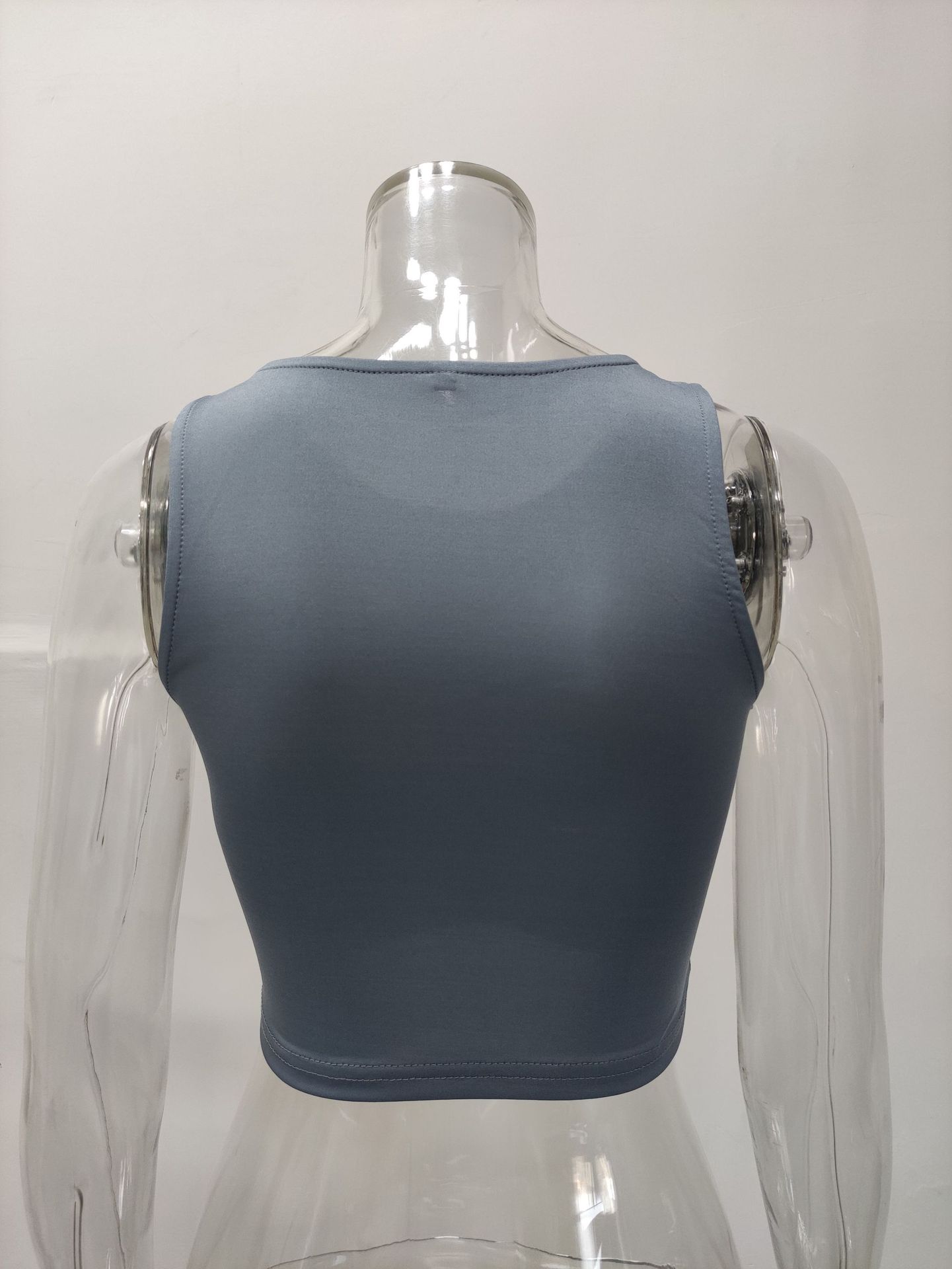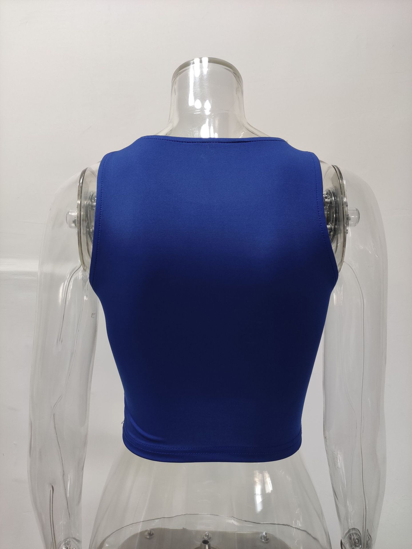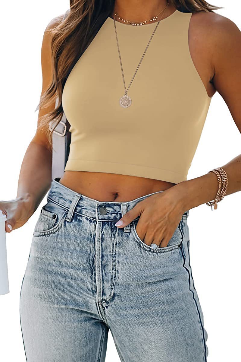 2023 여름 크로스 보더 아마존 단색 새로운 소원 유럽과 미국 민소매 승무원 목 I 자형 조끼 티셔츠 대외 무역 여성 의류스토어 가기
