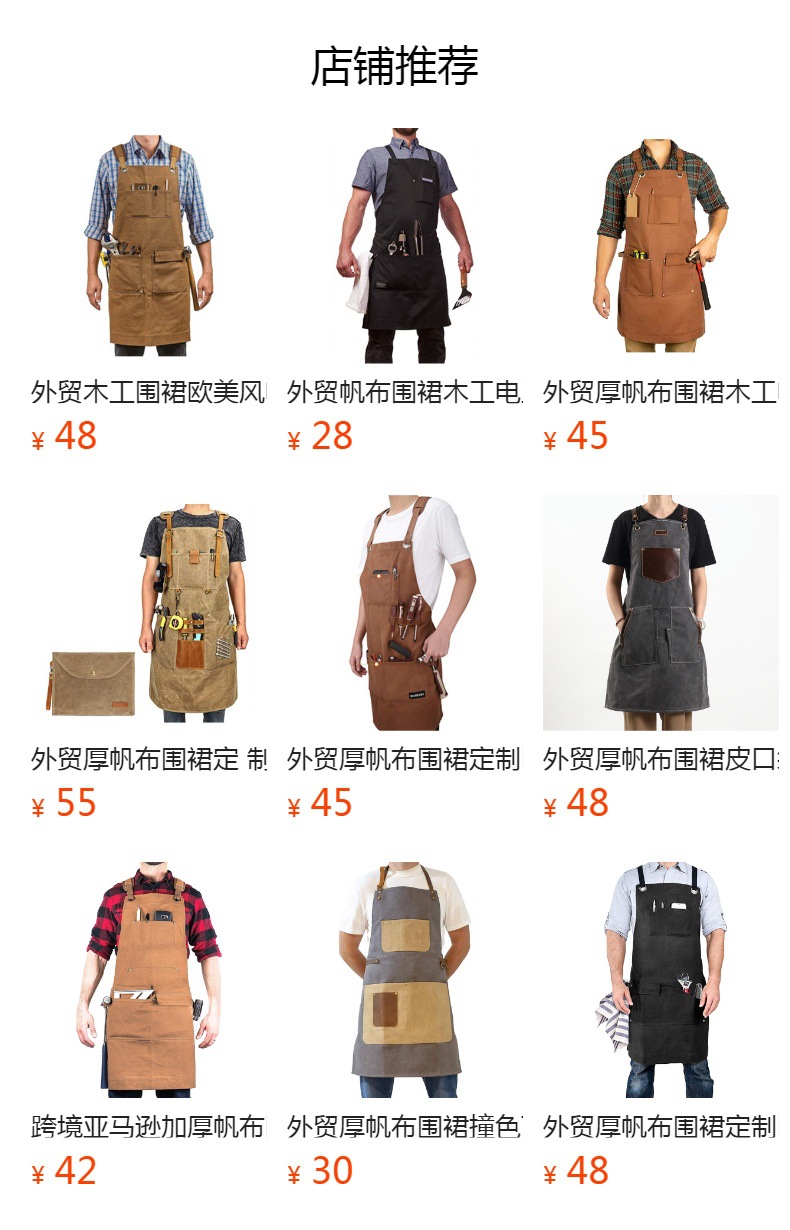 아마존 두꺼운 캔버스 앞치마 민소매 멀티 포켓 도구 목수 전기 바리 스타 우유 차 가게 앞치마 도매