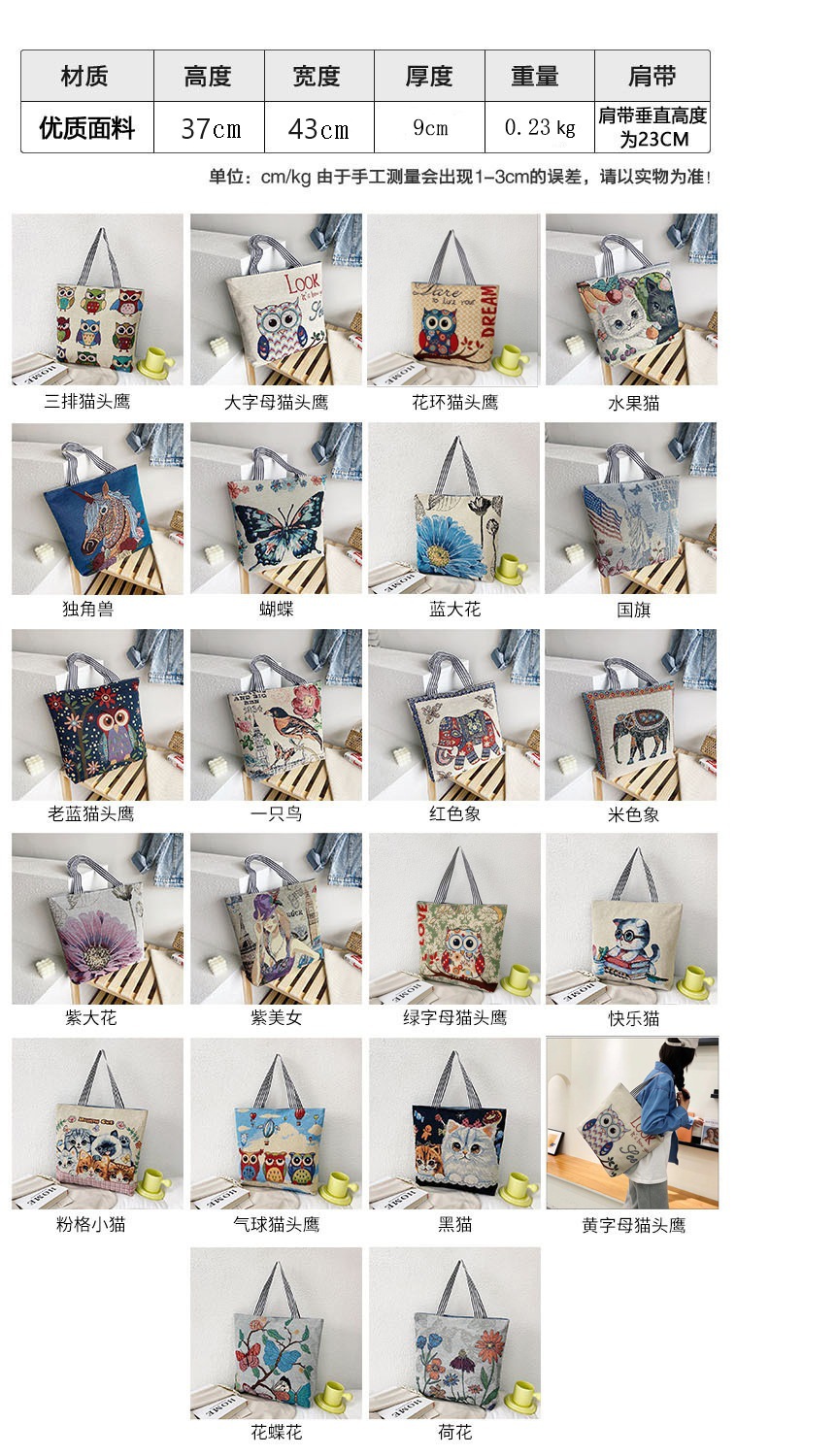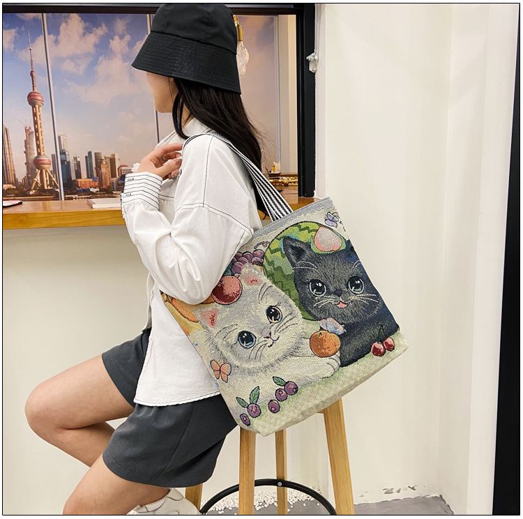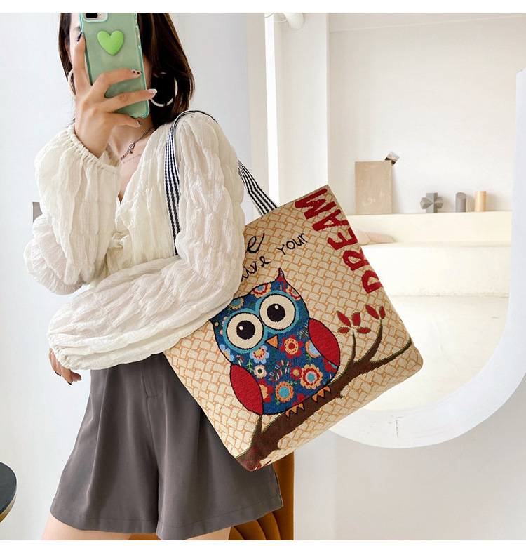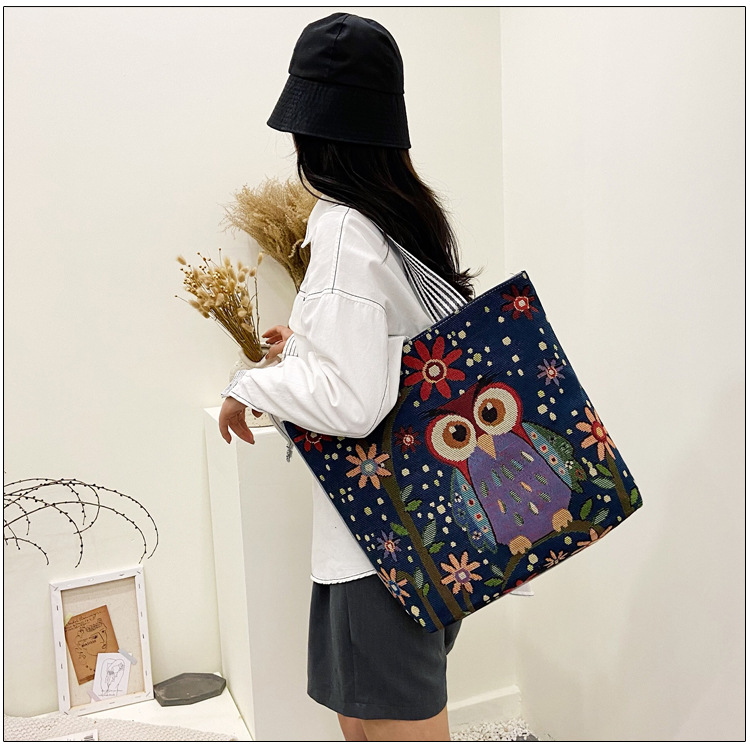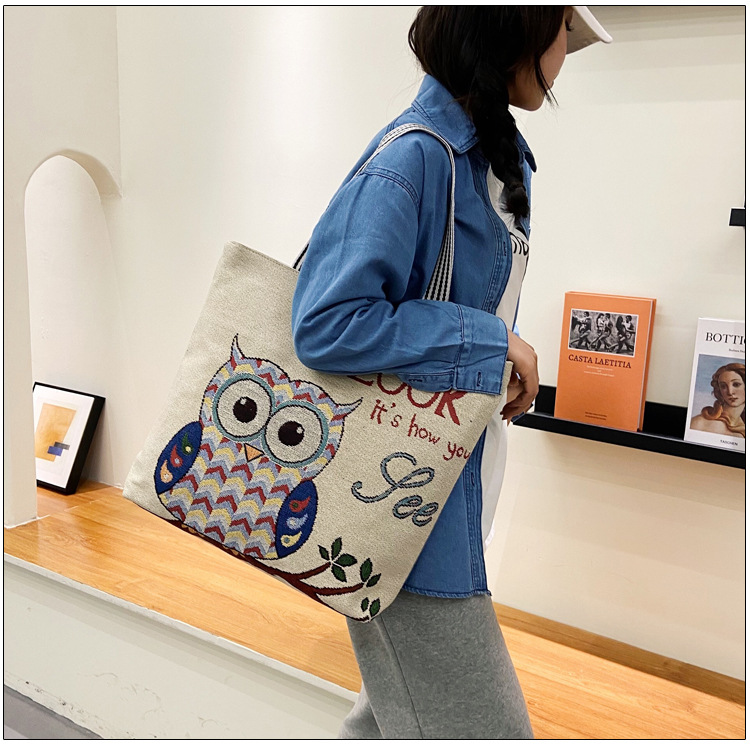 2024 새로운 학생 토트 핸드 헬드 캔버스 가방 국경 간 예술적 자수 빈티지 여성 어깨 캔버스 가방 도매스토어 가기